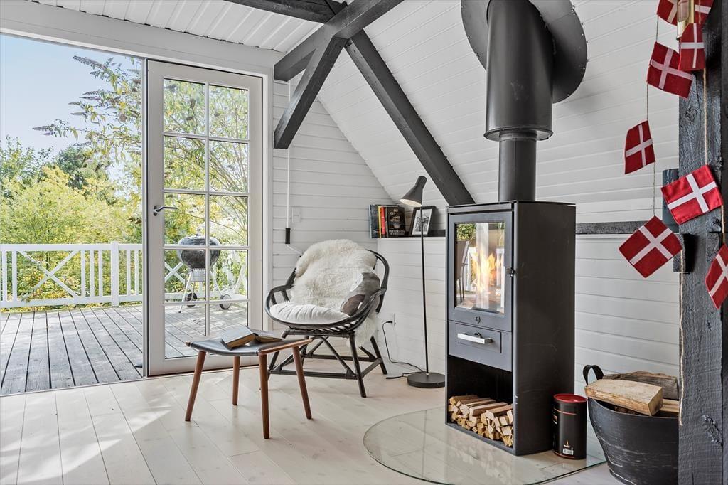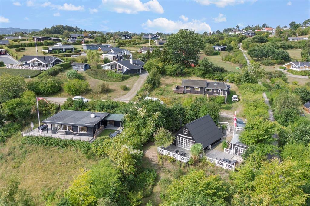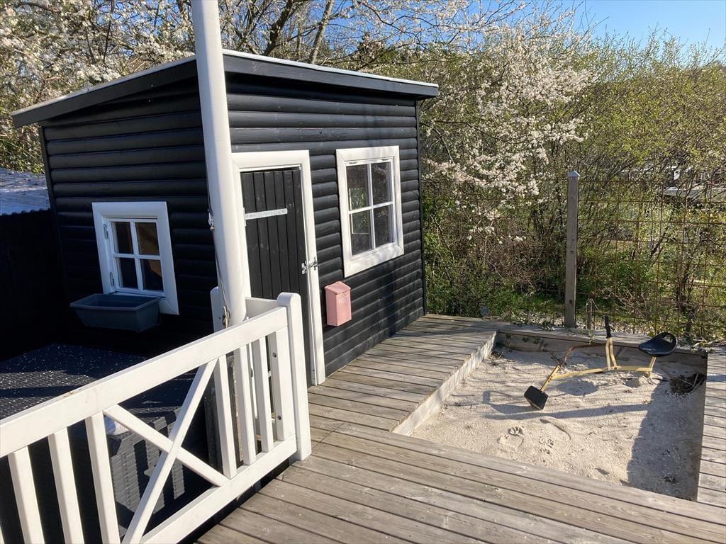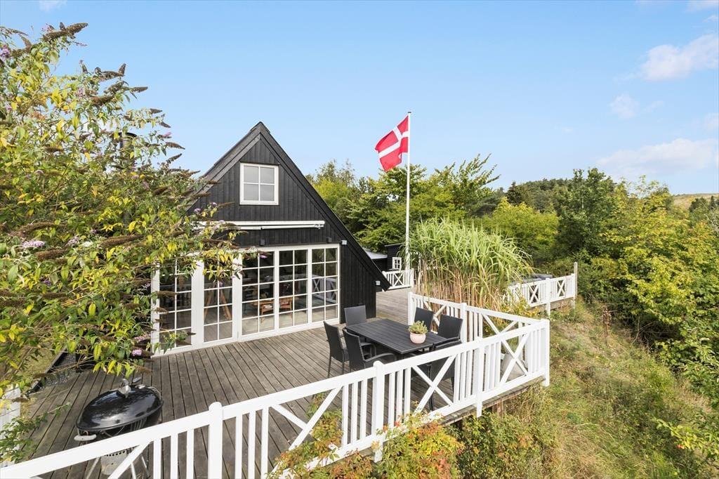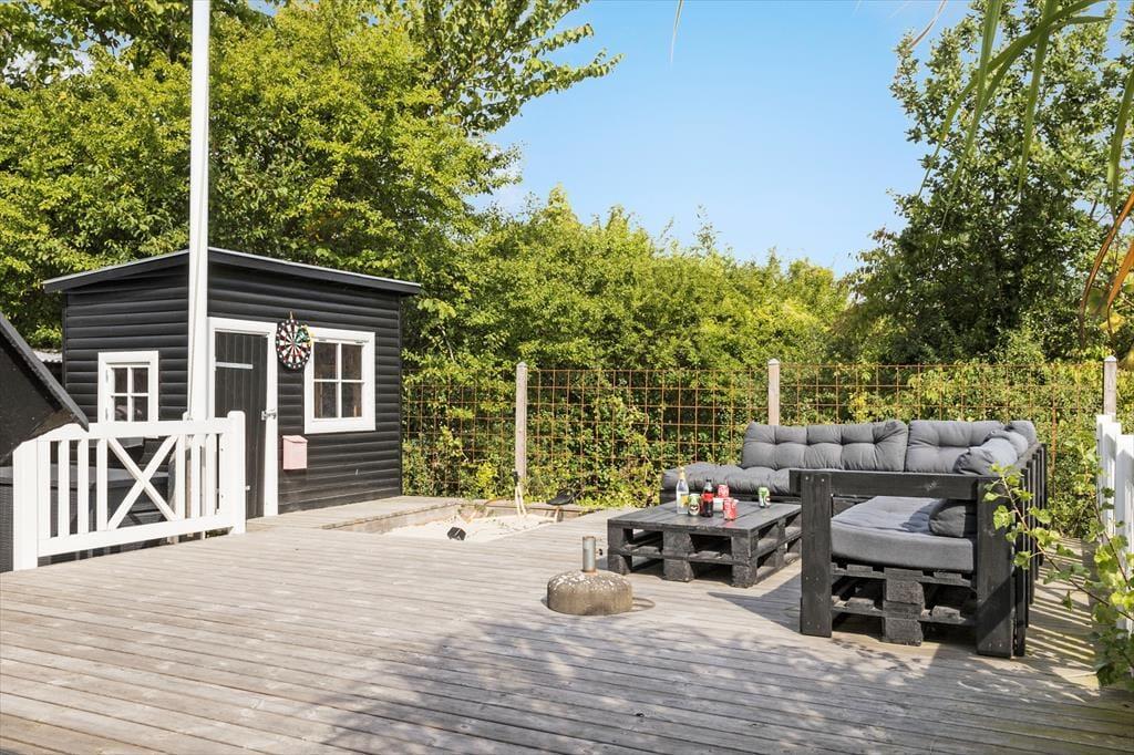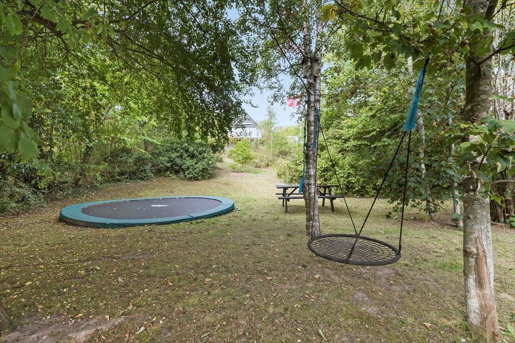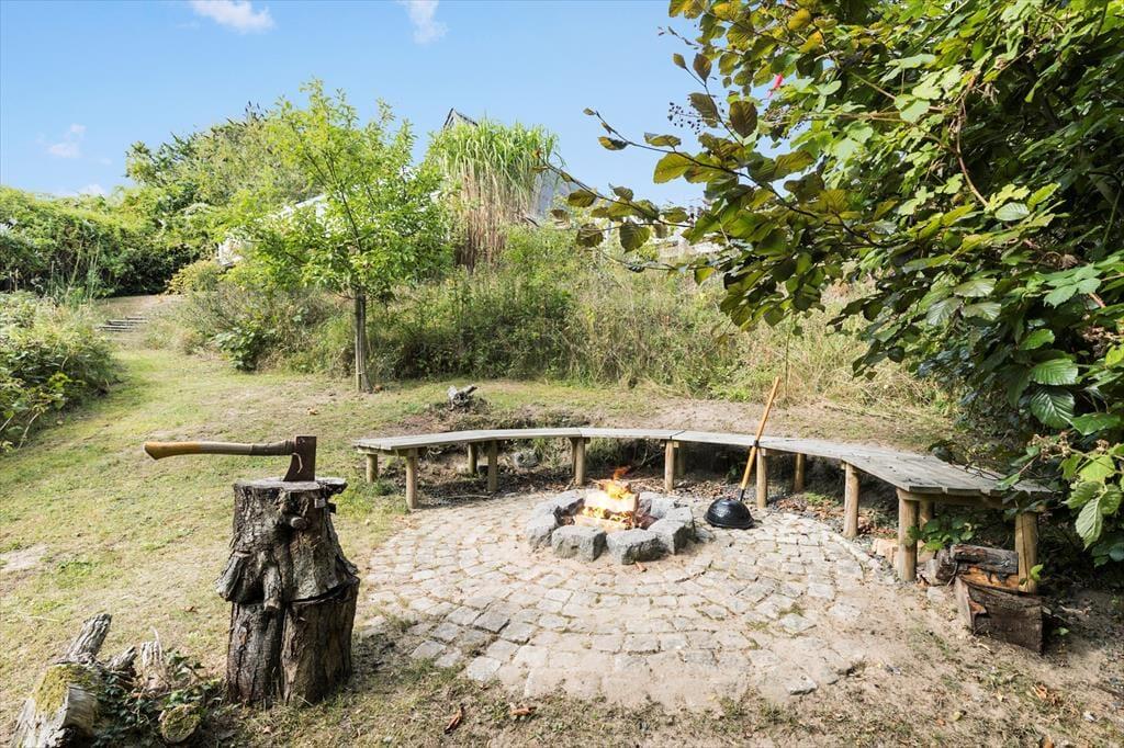 Dein Ferienhaus liegt am Ende einer Sackgasse und verwöhnt mit einem hübschen Ausblick über die hügelige Landschaft. Obwohl dein Ferienhaus lediglich 600 Meter vom kinderfreundlichen Badestrand an der Ebeltoft Vig trennen, schafft die erhöhte Lage deines Urlaubsdomizil ein schönes Gefühl von Ruhe und Abgeschiedenheit. Unter freiem Himmel erwartet dich ein fantastisches Grundstück mit einer großen Terrasse, auf der du dich nach Herzenslust sonnen kannst, während deine Kinder vergnügt im Spielhaus und in der Sandkiste spielen. Von der Terrasse aus führt eine Treppe hinab in den Garten, der bewusst sich selbst überlassen ist. Der Garten wirkt wie eine schöne, geschlossene Oase. Die Lagerfeuerstelle lädt zum romantischen Tagesausklang unter dem funkelnden Sternenhimmel ein. Für diejenigen, die ihr Feuerholz gern selber hacken, steht ein Hauklotz bereit. Deine Kinder werden sich garantiert sehr über das im Boden eingelassene Trampolin freuen.