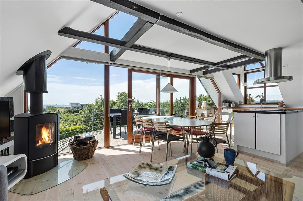 Hier im Hejrevej 10 erwartet dich eine klassische, gemütliche Urlaubsoase - mit viel Licht, Luft und Platz für das Beisammensein. Während du im Kreise deiner Lieben die Mahlzeiten genießt oder dir eine entspannte Stunde im Wohnraum gönnst, wirst du mit einer attraktiven Aussicht verwöhnt. Das reizende Ferienhaus präsentiert sich schlicht und heimelig. Vom ersten Moment an entspannst und erholst du dich und spürst dabei, wie sich eine herrliche Urlaubsstimmung in dir ausbreitet. An kühlen Abenden sorgt ein im Wohnraum platzierter Kaminofen für eine behagliche, stimmungsvolle Atmosphäre. Dank der großen Fensterpartie des Wohnraums bist du der Natur zu jeder Zeit ganz nah. Die ansprechende Küche fügt sich offen in den Wohnraum ein. Sie ist gut ausgestattet und ermöglicht es dir, gemeinsam mit deiner Familie in vergnügter Runde die täglichen Mahlzeiten zuzubereiten. Mit vier guten Schlafräumen, einem hellen Badezimmer und einem Gäste-WC bietet dir dieses Ferienhaus reichlich Platz für einen Familienurlaub oder für einen gemeinsamen Urlaub mit befreundeten Paaren.