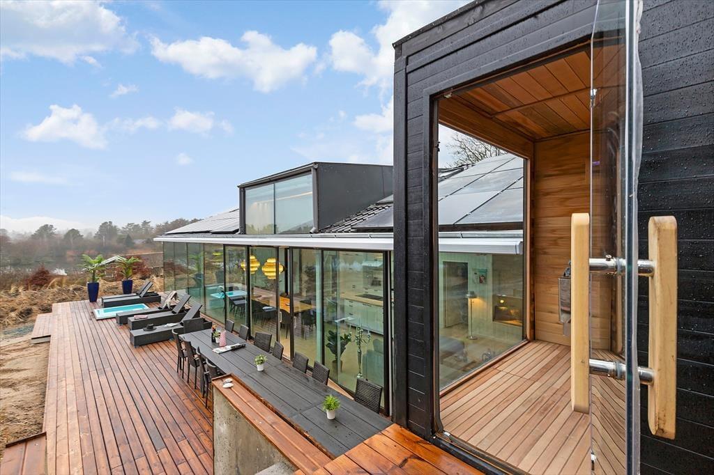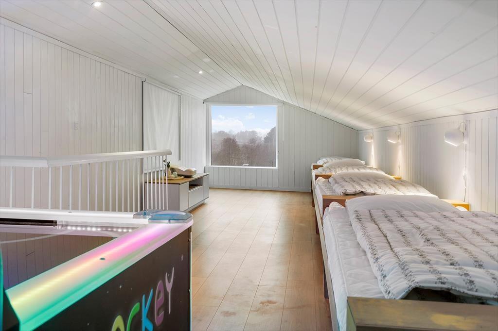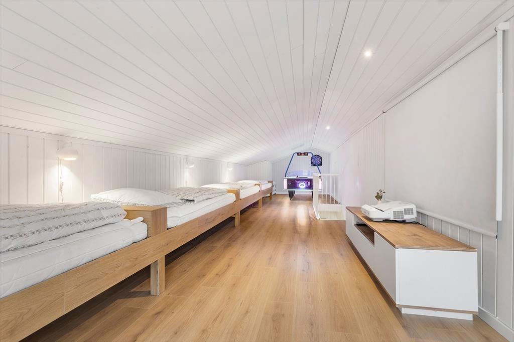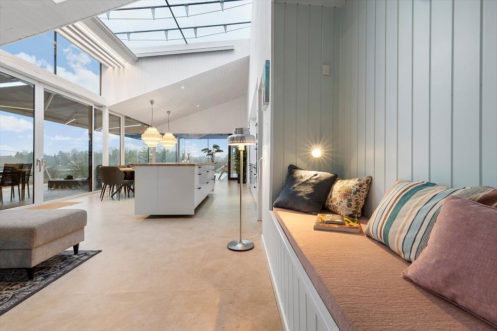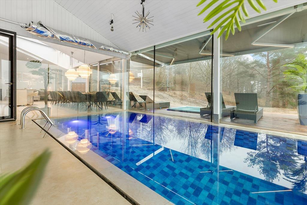 Freue dich bereits jetzt auf herrliche Urlaubstage in deinem ganz eigenen Urlaubsparadies mit der Adresse Lundshøjvej 40, in dem moderner Komfort auf gemütlichen Charme trifft. Dein Urlaubsdomizil bietet einen geräumigen Aufenthaltsraum, sieben Schlafräume und zwei Badezimmer - allesamt wie gemacht für erholsame, entspannte Urlaubstage. Stelle dir nur vor, wie du dich im Kreise deiner Mitreisenden im Küchen- und Essbereich aufhältst, in dem ihr zusammen die Mahlzeiten zubereitet und anschließend am großen Esstisch genießt. Nach einem Tag voller Erlebnissen kannst du dich im Wohnraum in vollen Zügen entspannen, ein Glas Wein genießen, dem Knistern des Kaminofenfeuers lauschen und mit deinen Lieben die Erlebnisse des Tages Revue passieren lassen. Oder wie wäre es mit ein paar erfrischenden Schwimmbahnen im tollen Indoor-Pool deines Ferienhauses? Bei Einbruch der Dunkelheit solltest du dir mit deiner besseren Hälfte den ein oder anderen Saunagang in der fantastischen Outdoor-Sauna gönnen - mit Blick auf die am Himmel funkelnden Sterne. Ein perfekter Augenblick voller Nähe und purer Entspannung.