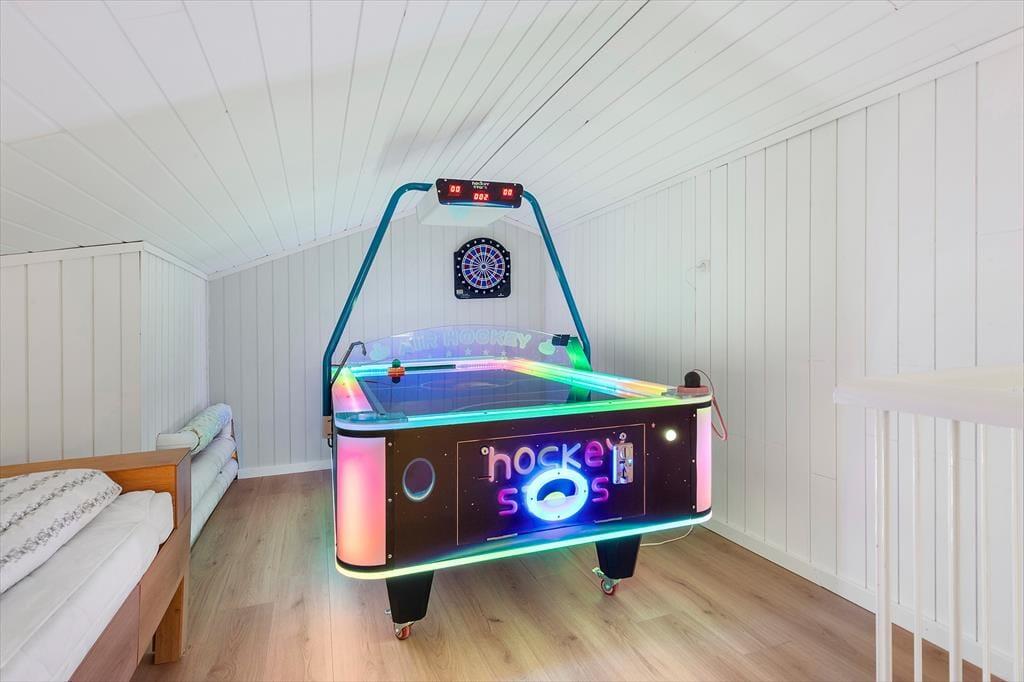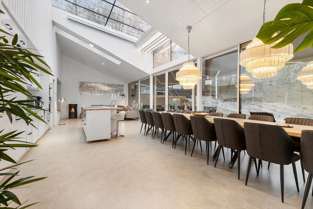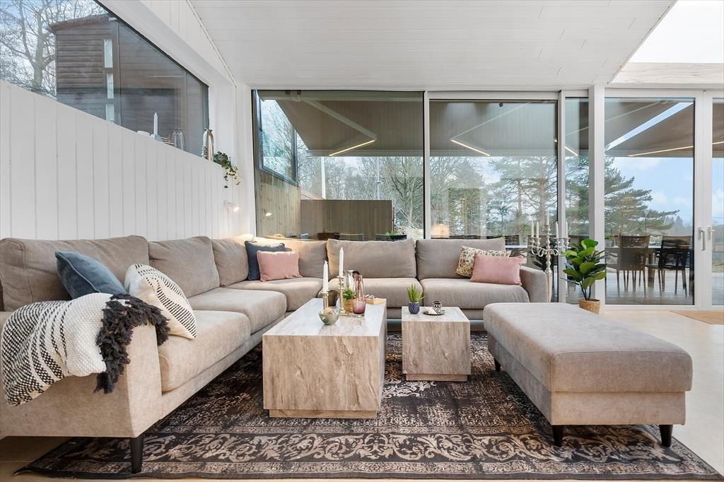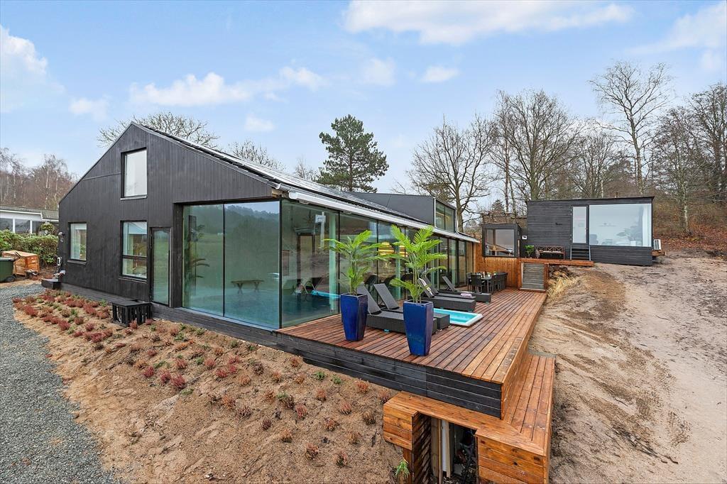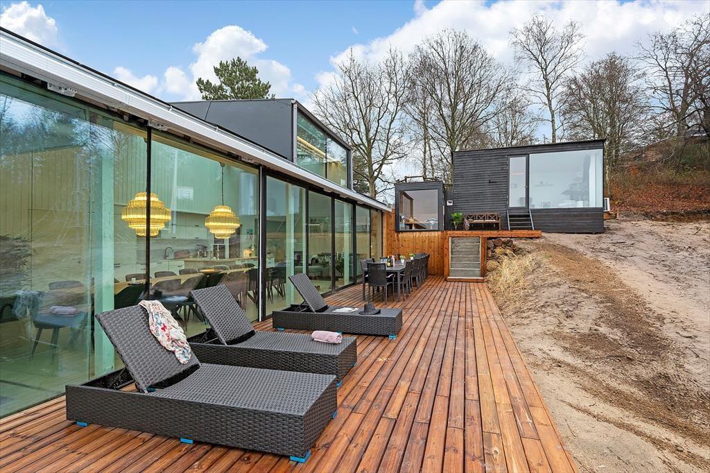 Freue dich bereits jetzt auf herrliche Urlaubstage in deinem ganz eigenen Urlaubsparadies mit der Adresse Lundshøjvej 40, in dem moderner Komfort auf gemütlichen Charme trifft. Dein Urlaubsdomizil bietet einen geräumigen Aufenthaltsraum, sieben Schlafräume und zwei Badezimmer - allesamt wie gemacht für erholsame, entspannte Urlaubstage. Stelle dir nur vor, wie du dich im Kreise deiner Mitreisenden im Küchen- und Essbereich aufhältst, in dem ihr zusammen die Mahlzeiten zubereitet und anschließend am großen Esstisch genießt. Nach einem Tag voller Erlebnissen kannst du dich im Wohnraum in vollen Zügen entspannen, ein Glas Wein genießen, dem Knistern des Kaminofenfeuers lauschen und mit deinen Lieben die Erlebnisse des Tages Revue passieren lassen. Oder wie wäre es mit ein paar erfrischenden Schwimmbahnen im tollen Indoor-Pool deines Ferienhauses? Bei Einbruch der Dunkelheit solltest du dir mit deiner besseren Hälfte den ein oder anderen Saunagang in der fantastischen Outdoor-Sauna gönnen - mit Blick auf die am Himmel funkelnden Sterne. Ein perfekter Augenblick voller Nähe und purer Entspannung.