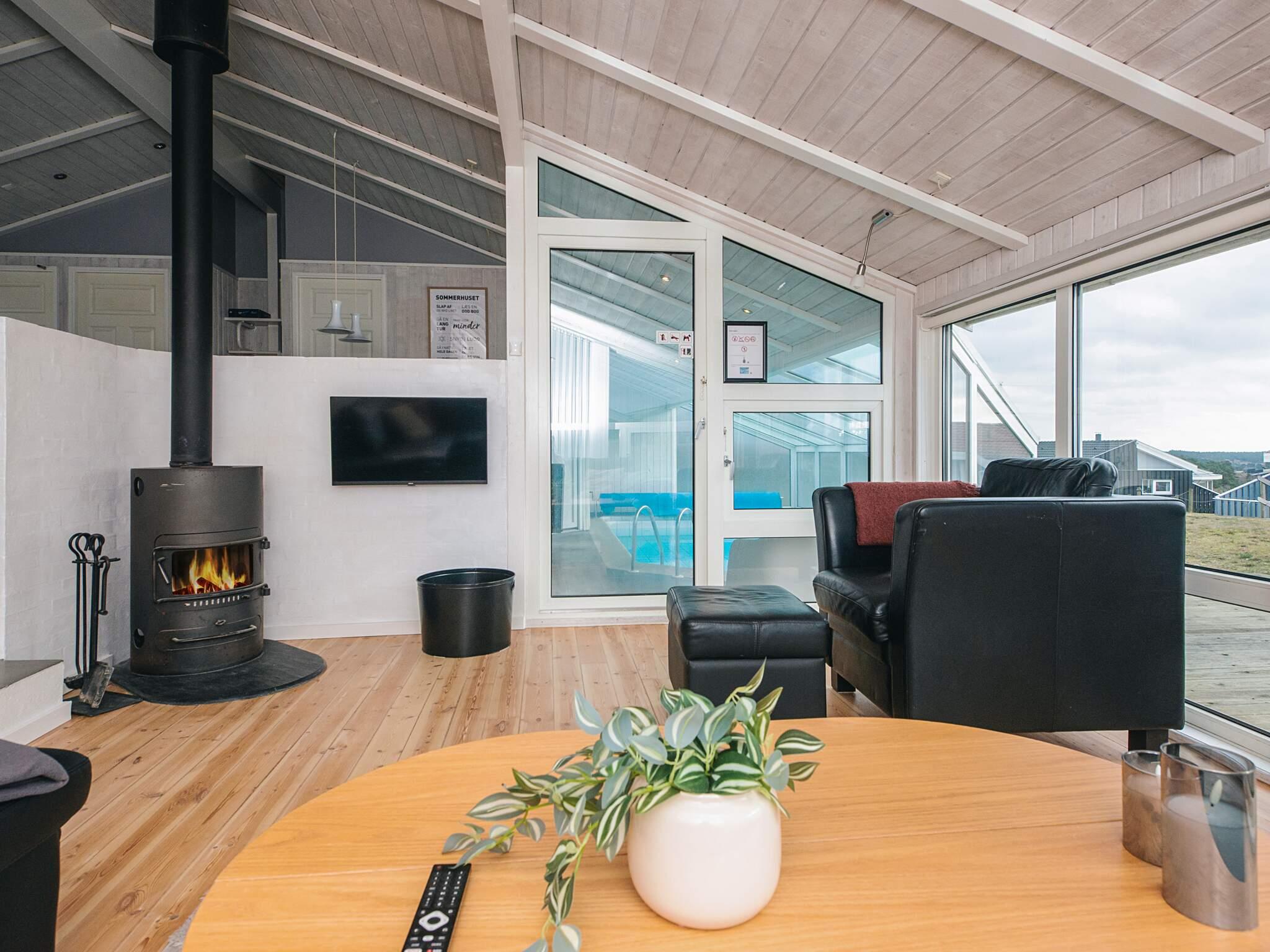 Gut gelegenes Ferienhaus mit Innenpool, Sauna und Panoramablick bei Handrup Bakker Dieses geräumige und gepflegte Ferienhaus befindet sich in der attraktiven Gegend Handrup Bakker, nahe Ebeltoft. Das Haus bietet Platz für bis zu 8 Personen und eignet sich sowohl für Familienurlaube als auch für Aufenthalte mit Freunden. Das Ferienhaus ist hell und modern eingerichtet, mit offen verbundenem Wohnzimmer und Küche. Vom Wohnzimmer aus genießen Sie einen herrlichen Panoramablick über die Bucht, die Küstenlinie und die Stadt Ebeltoft, und bei klarem Wetter ist Samsø am Horizont zu sehen. Das Haus ist mit energieeffizienten Lösungen ausgestattet, darunter eine Wärmepumpe und Klimaanlage, die das ganze Jahr über für ein angenehmes Raumklima sorgen. Eine Luft-Wasser-Wärmepumpe wird zur Beheizung des Pools genutzt, was die niedrigstmöglichen Kosten für die Poolheizung gewährleistet. Es gibt 4 Schlafzimmer und 2 Badezimmer mit Fußbodenheizung. Der hauseigene Innenpool und die Sauna bieten zu jeder Jahreszeit Entspannung. Im Außenbereich befindet sich ein 1.270 m² großes, angelegtes Grundstück mit schönen Terrassen nach Norden und Süden, Gartenmöbeln, Liegestühlen und Grill. Hier gibt es viel Platz zum Entspannen und Spielen, und außerdem eine gemütliche Feuerstelle, die zu Stockbrot und gemeinsamen Stunden an warmen Sommerabenden einlädt. Für die jüngsten Familienmitglieder gibt es einen Aktivitätsraum mit Platz zum Spielen und Verweilen – und gleichzeitig eine herrliche Aussicht, sodass sowohl Kinder als auch Erwachsene die Umgebung genießen können. Kostenlose Parkplätze sind auf dem Grundstück vorhanden, und ein Hund ist erlaubt. Die Umgebung bietet schöne Badestrände, malerische Wander- und Radwege sowie Restaurants in der Nähe. Ebeltoft liegt etwa 6 km vom Haus entfernt und bietet charmante Gassen, Einkaufsmöglichkeiten und Sehenswürdigkeiten. Das Ferienhaus ist außerdem ein idealer Ausgangspunkt für Ausflüge in Djursland und den restlichen Teil Ostjütlands. Ein gut ausgestattetes Ferienhaus in naturschöner Umgebung mit Fokus auf Komfort, Aussicht und Entspannung.