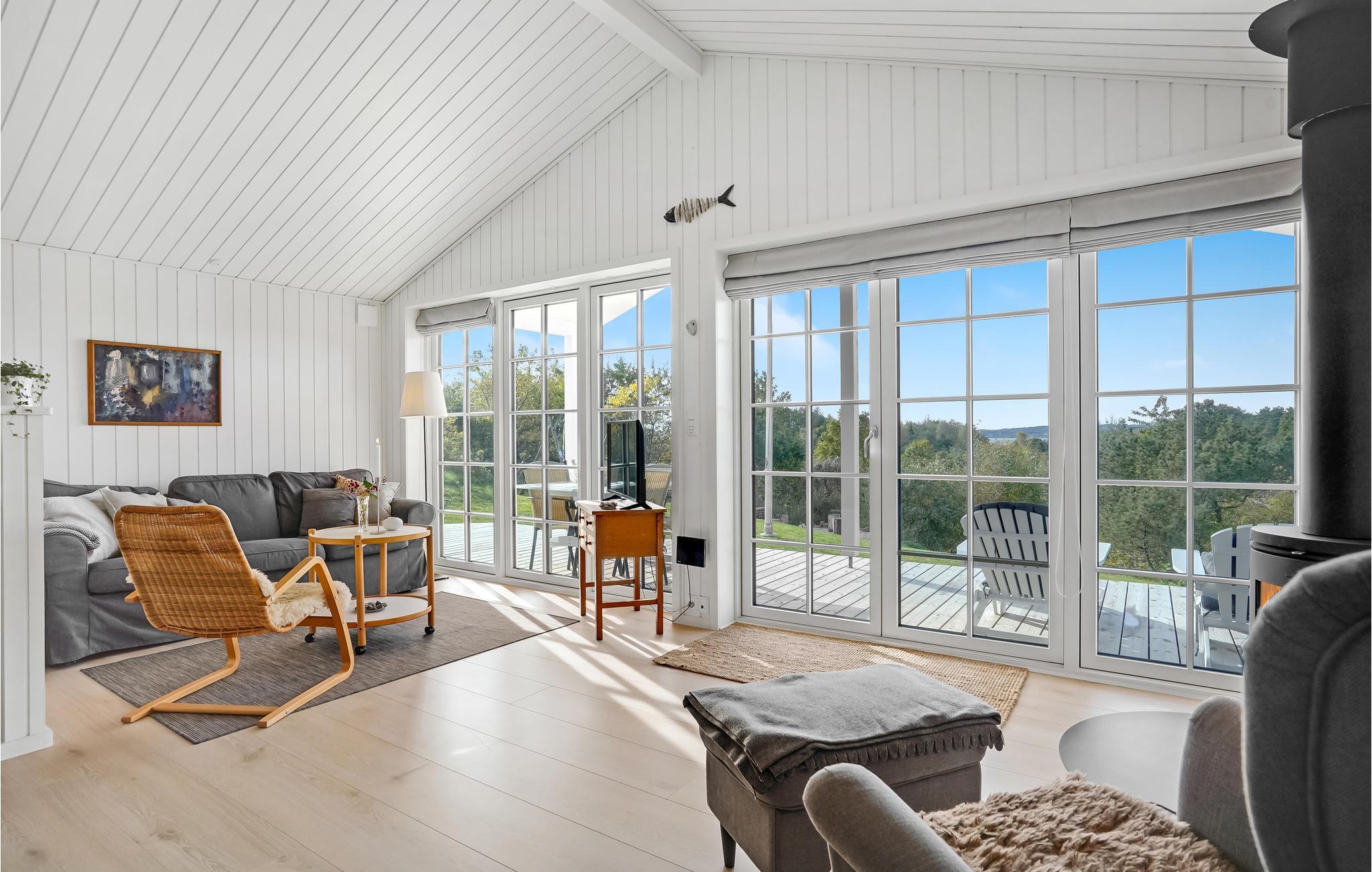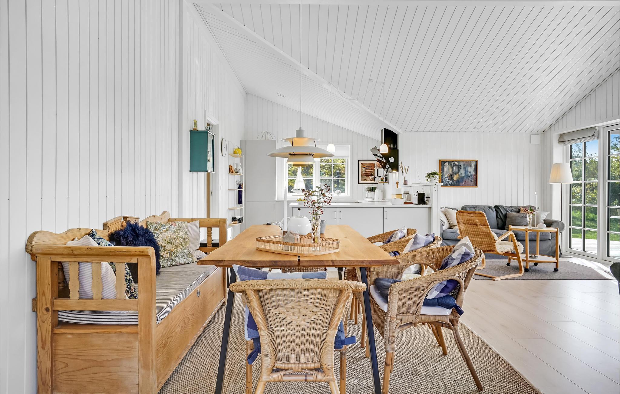 Qualitiativ hochwertiges Ferienhaus auf einem Naturgrundstück mit Blick auf das Wasser und in fußläufiger Entferunung von einem kinderfreundlichen Sandstrand entfernt. Das Haus ist mit geräumigen Schlafzimmern eingerichtet. Die Küche ist erstklassig. Vom Essbereich aus haben Sie Zugang zu einer überdachten Terrasse und die Terrassenbereiche sind rund um das gesamte Haus angelegt.