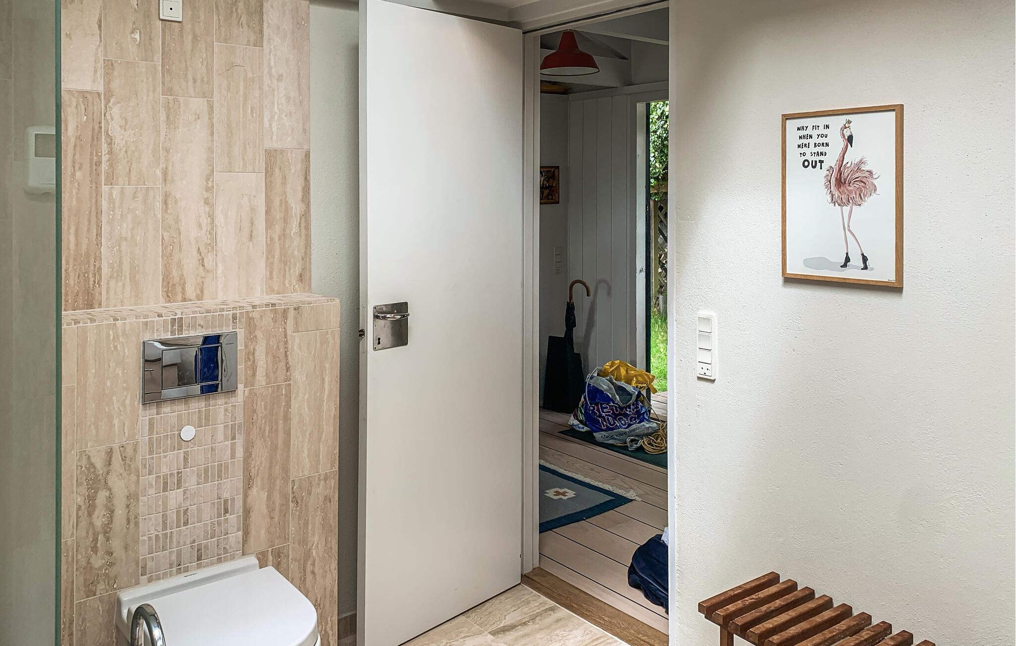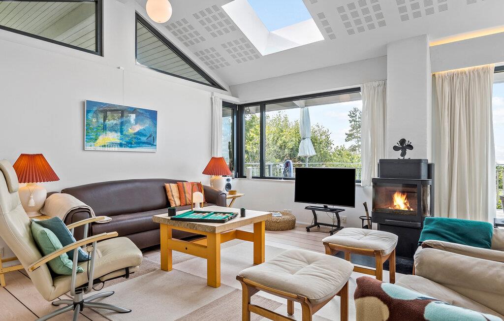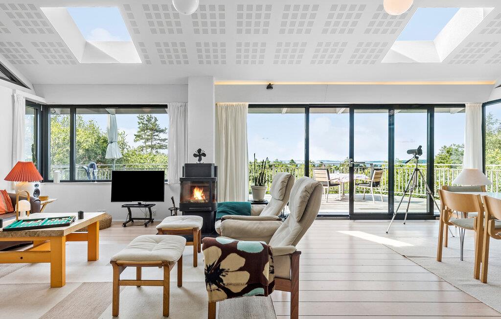 Erleben Sie den perfekten Rückzugsort im Ferienhaus Handrup Strand, das mit seiner großzügigen Fensterfront und der fantastischen Aussicht auf die Ebeltoft Bucht begeistert. Die hellen Innenräume sind elegant und gemütlich eingerichtet, sodass Sie sich sofort wohlfühlen werden. Die offene Gestaltung fördert ein Gefühl von Weite und Komfort.