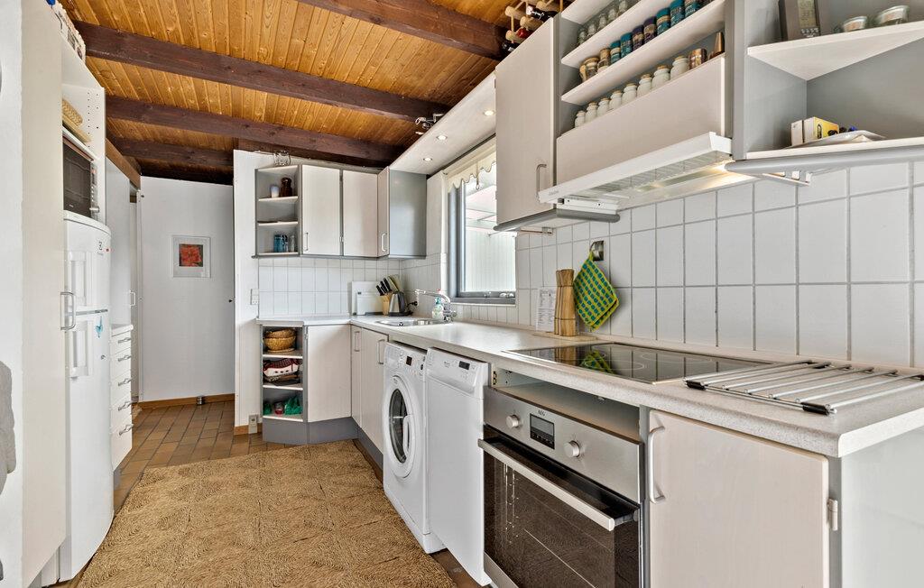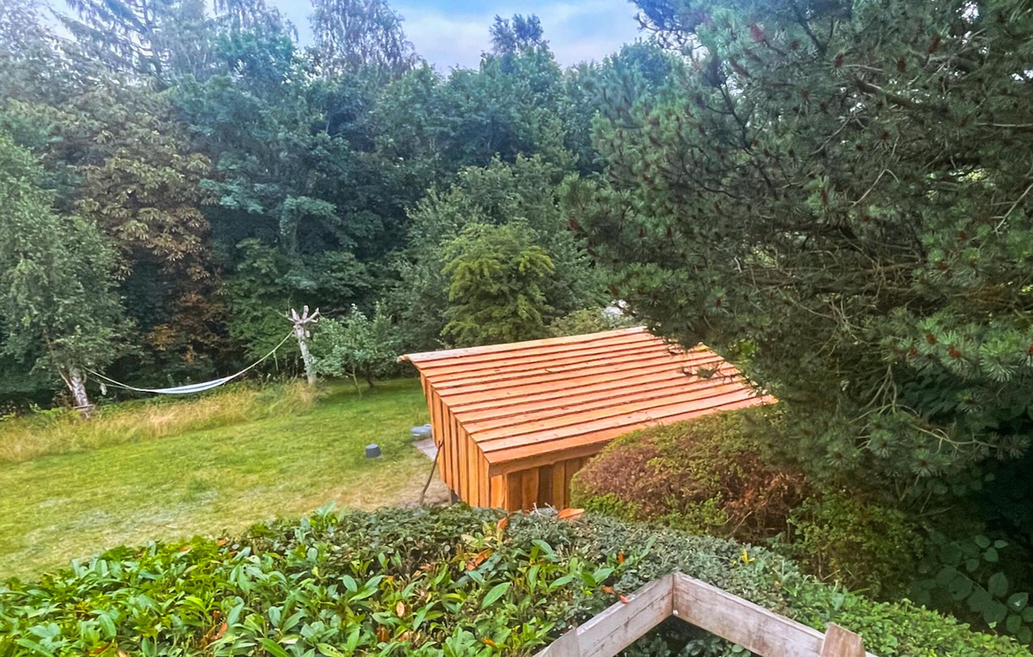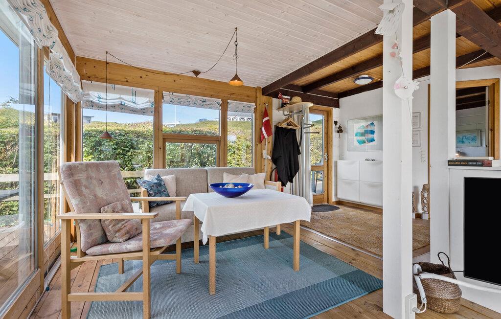 Genießen Sie Ihren Aufenthalt in diesem charmanten Ferienhaus am Handrup Strand. Die große Fensterfront im Wohnzimmer lässt viel Tageslicht herein und bietet Ihnen einen herrlichen Blick auf die weitläufige Terrasse und den Garten. Machen Sie es sich auf dem Sofa bequem und entspannen Sie sich. Der Holzofen sorgt für eine gemütliche Atmosphäre an kühleren Tagen. Die klassische Einrichtung schafft ein behagliches Ambiente, während die großzügige Terrasse und der Garten mit Shelter-Hütte ideal für Familien sind. Hier können Sie entspannen und abends am Lagerfeuer in geselliger Runde zusammenkommen.