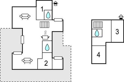 Badezimmer (nr. 1) - WC. Warmes und kaltes Wasser. Dusche