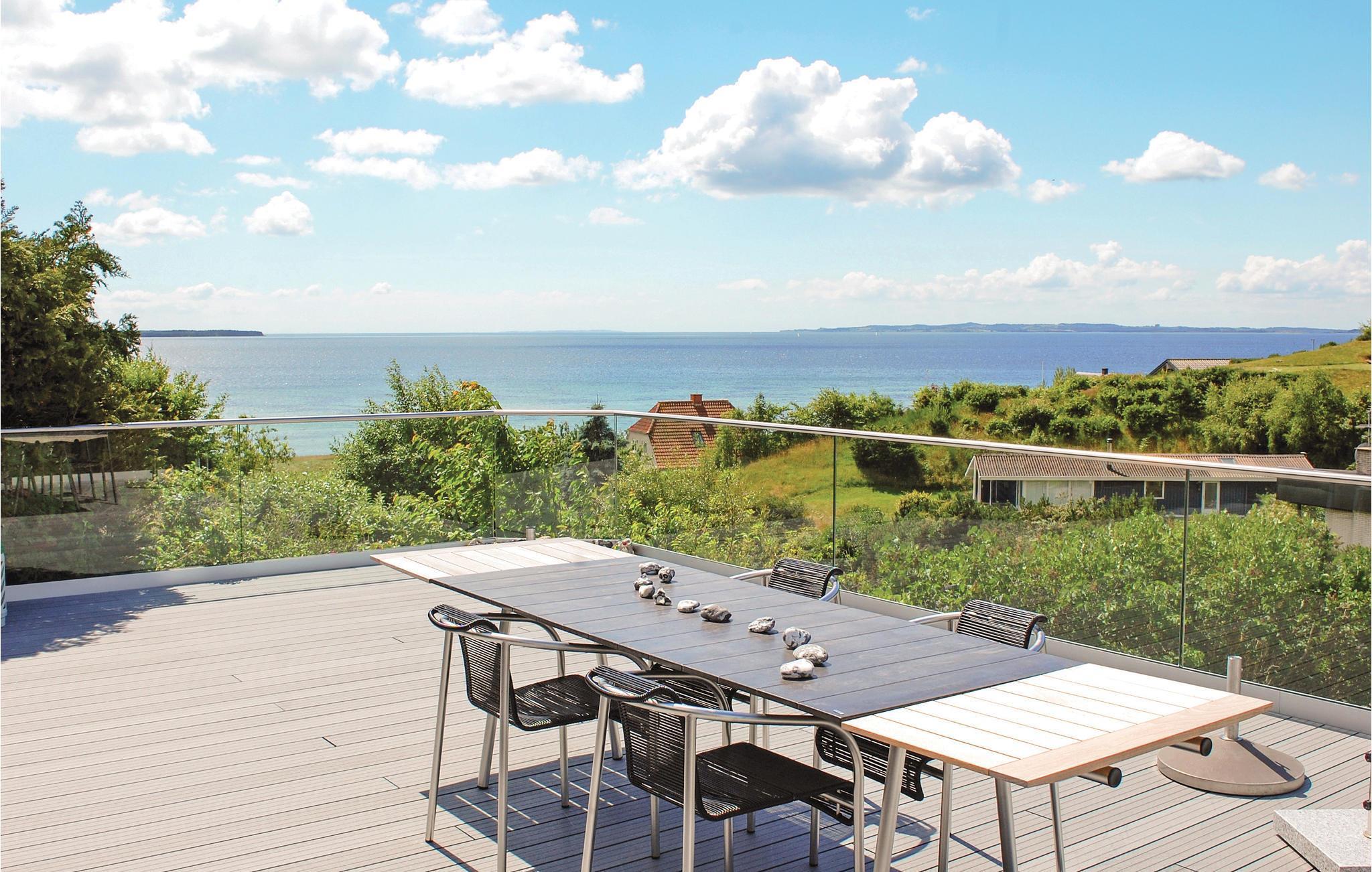 Einzigartige Lage und prächtige Panoramaaussicht sowie eine eindrucksvolle Architektur kennzeichnen dieses Ferienhaus. Hier erwartet Sie ein erstklassiges Haus mit zwei Etagen. Im Inneren herrscht ein guter Lichteinfall, die modernen Möbel sind von hoher Qualität. Ein außergewöhnlich angenehmes Urlaubserlebnis wird Ihnen hiermit geboten. Draußen vor dem Haus gibt es einen sichtgeschützten Sonnenhof sowei eine große Panoramaterrasse. Der Blick auf den Sonnenuntergang und nach Ebeltoft Vig bieten Ihnen unvergessliche Ferienerlebnisse.