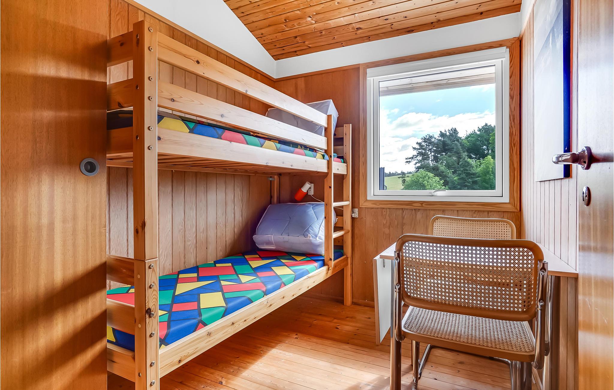 Das schöne Ferienhaus befindet sich auf einem großen, hoch gelegenen Naturgrundstück, auf dem Platz zum Spielen und Gemütlichkeit für die ganze Familie ist. Im Inneren des Ferienhauses erwarten Sie 3 Schlafzimmer, 1 Badezimmer und ein schöner Wohnbereich mit Küche mit einem weiteren Schlafplatz. Vom gemütlichen Wohnbereich mit Kamin haben Sie einen schönen Blick ins Grüne.