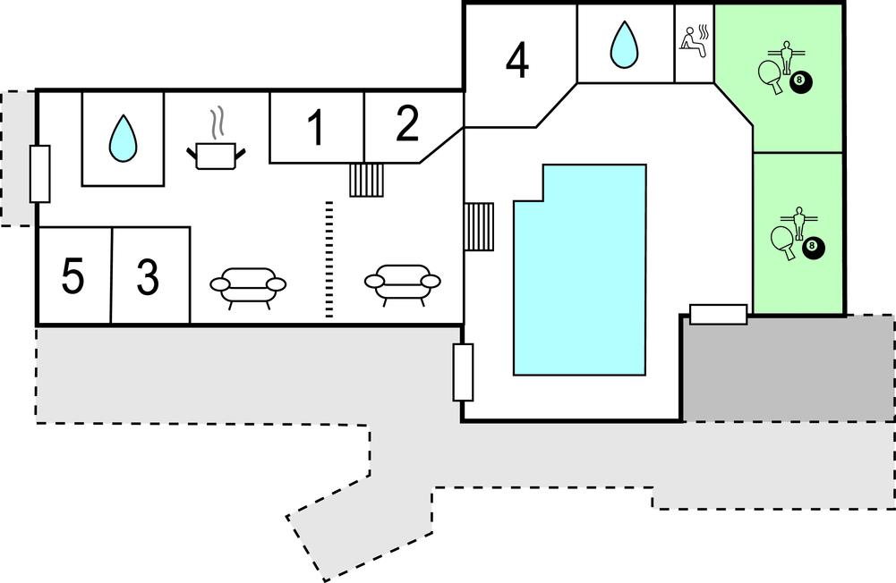 Ein wirklich interessantes Ferienhaus. Sind Sie gerne aktiv, schwimmen Sie gerne im Pool, dann ist dieses Haus die perfekte Wahl. Im großen Aktivitätsraum stehen für Sie Pool, Tischfußball, Tischtennis und Darts bereit. Das Haus erwartet Sie im großen, naturbelassenen Gebiet Handrup Bakker. Auch ein großes Grundstück zum Spielen gehört dazu. Durch seine Größe und Einrichtung ist das Haus auch für mehrere Familien geeignet, denn es besitzt einen großen Poolraum, wo Wasserratten neben anderen, die gerne in aller Ruhe zusammensitzen ihren Platz finden. Auf der Terrasse nach Südwesten scheint die Sonne fast den ganzen Tag. Die Heizung ist eine umweltgerechte und kostengünstige Erdwärmepumpe. Brennholz kann gekauft werden.