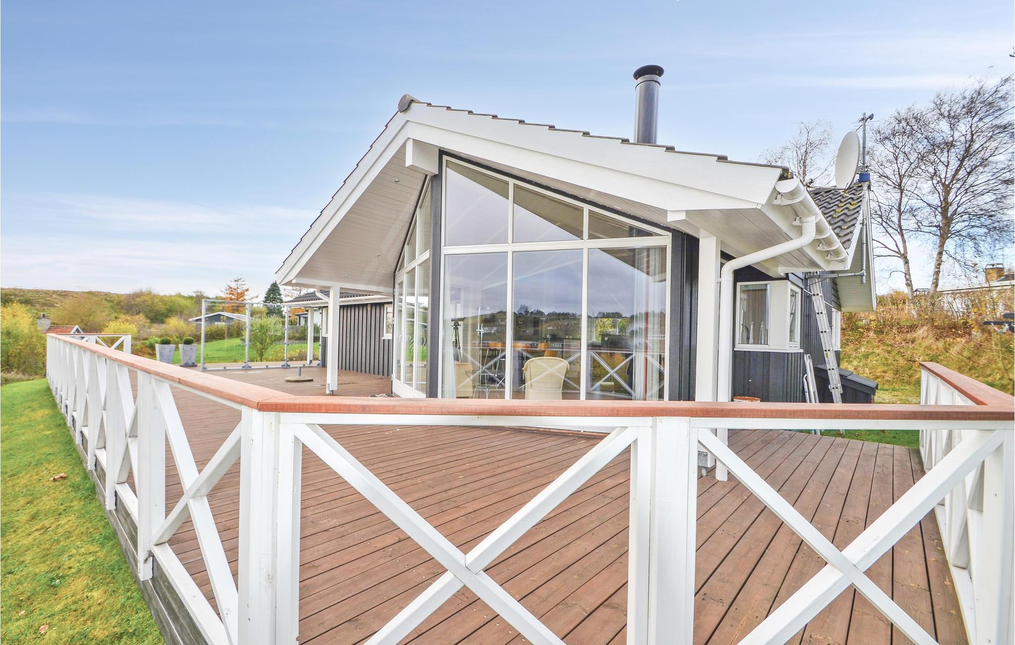 Ferienhaus mit Meerblick, großer Terrasse und kinderfreundlicher Umgebung in Handrup Bakker, Dänemark.