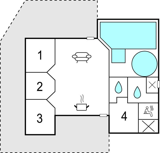 Badezimmer 7m2 (nr. 1) - WC. Warmes und kaltes Wasser. Dusche