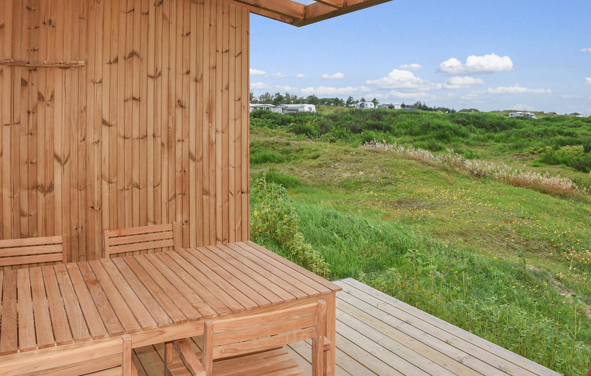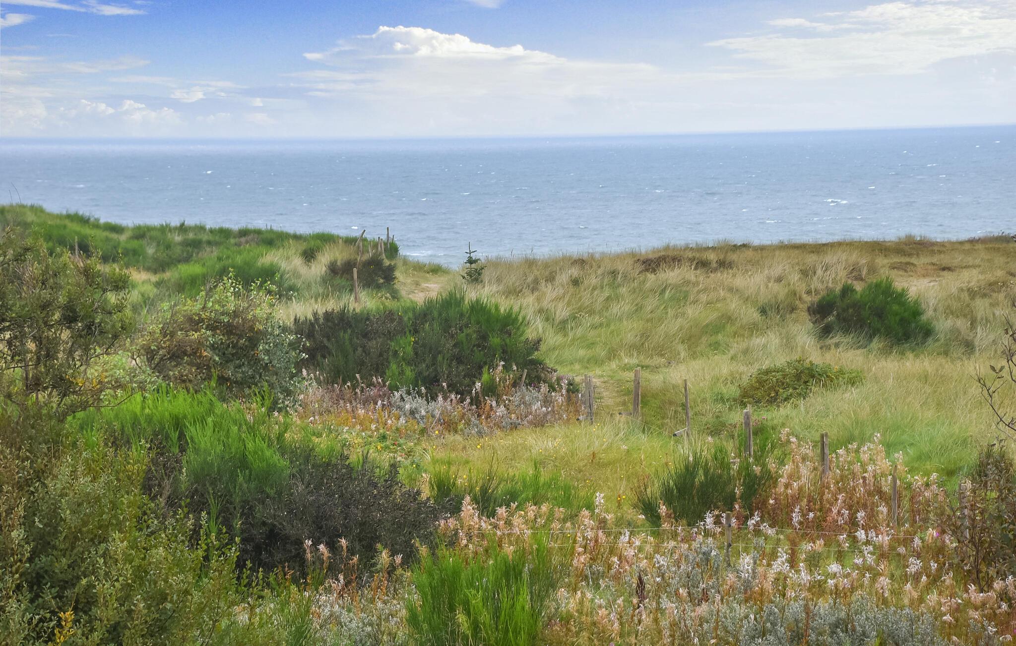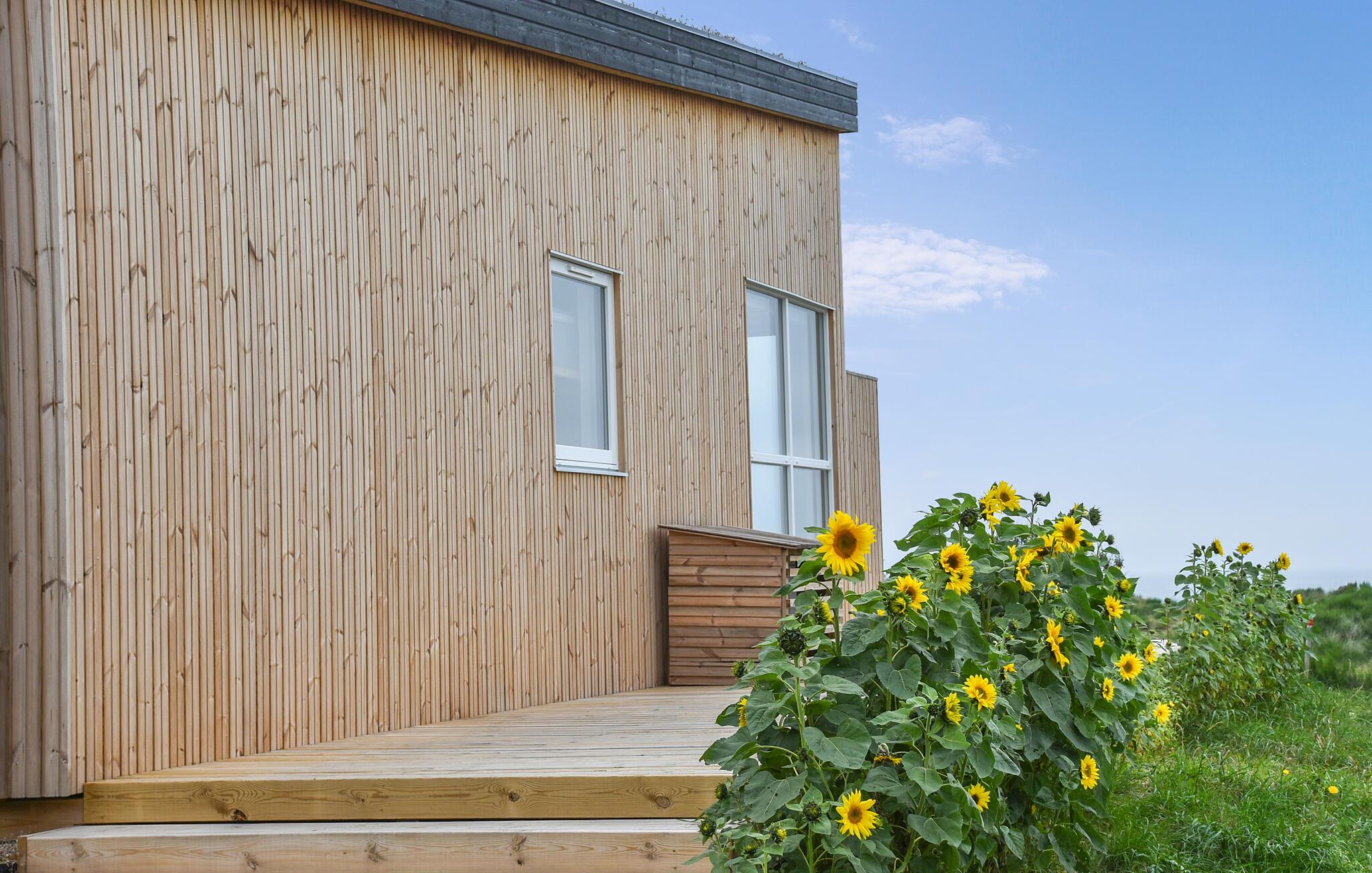 Erleben Sie Meerblick und Entspannung im modernen Ferienhaus in Hanstholm mit Terrasse und direktem Strandzugang.
