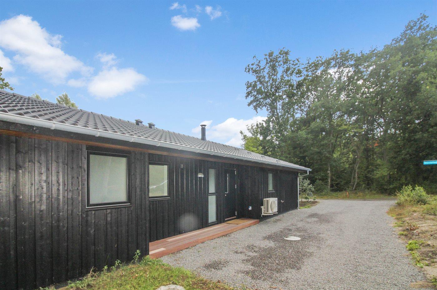 Dieses moderne Ferienhaus in Hasle bietet viel Licht, Komfort und eine große Terrasse inmitten der Natur.