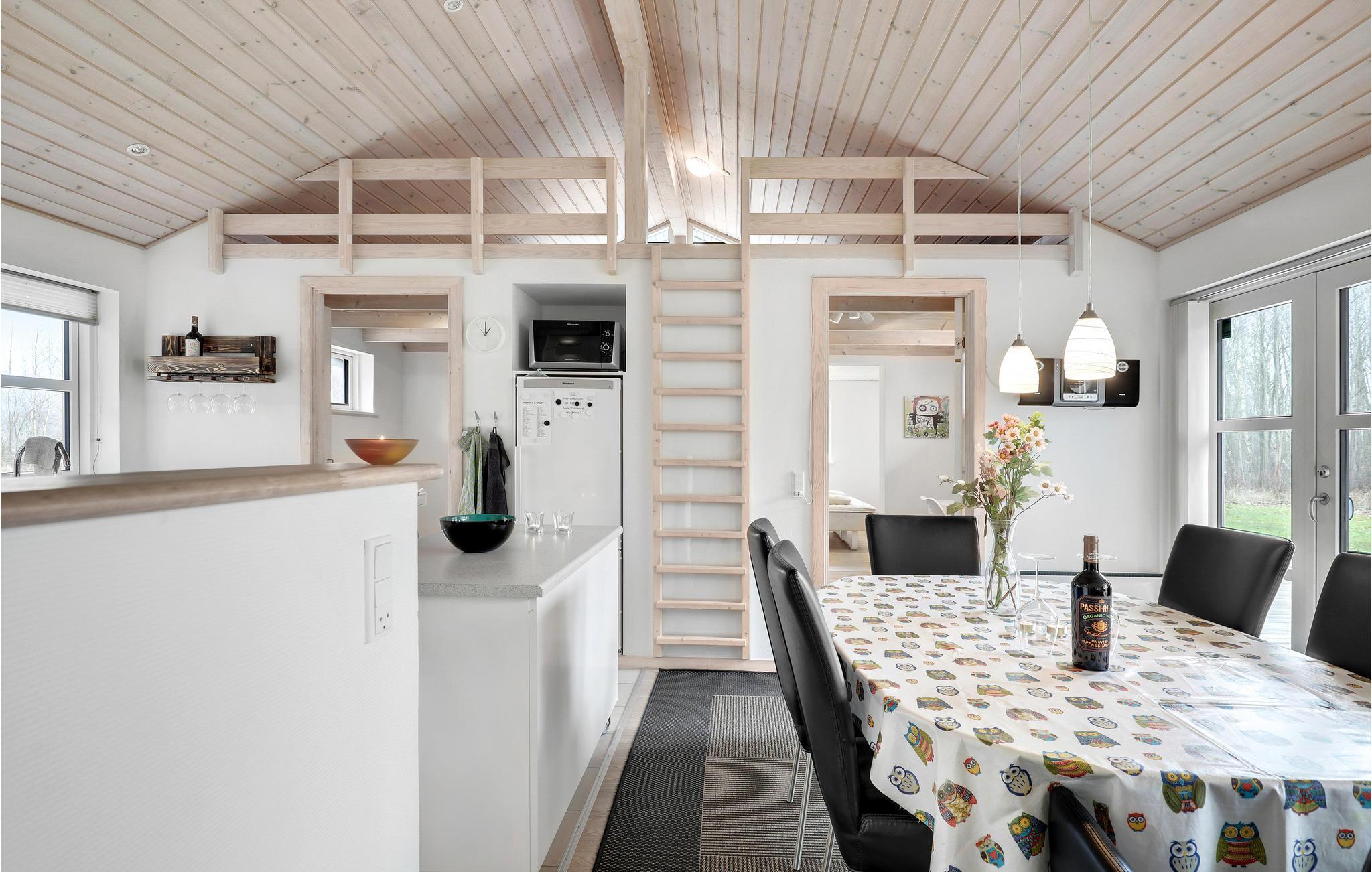 Dieses Ferienhaus ist hell und modern eingerichtet und mit einer offenen Küche und einem schönen Ess- und Wohnzimmer mit komfortablen Möbeln ausgestattet. Das Haus verfügt über drei gute Schlafzimmer und ein großes Badezimmer mit Badewanne. Hier können Sie sich nach einem langen Ferientag entspannen und vom Wasser massieren lassen. Vom Wohnzimmer gelangen Sie auf eine schöne Holzterrasse, wo Sie schöne Stunden an der frischen Luft und mit der Familie verbringen können.
