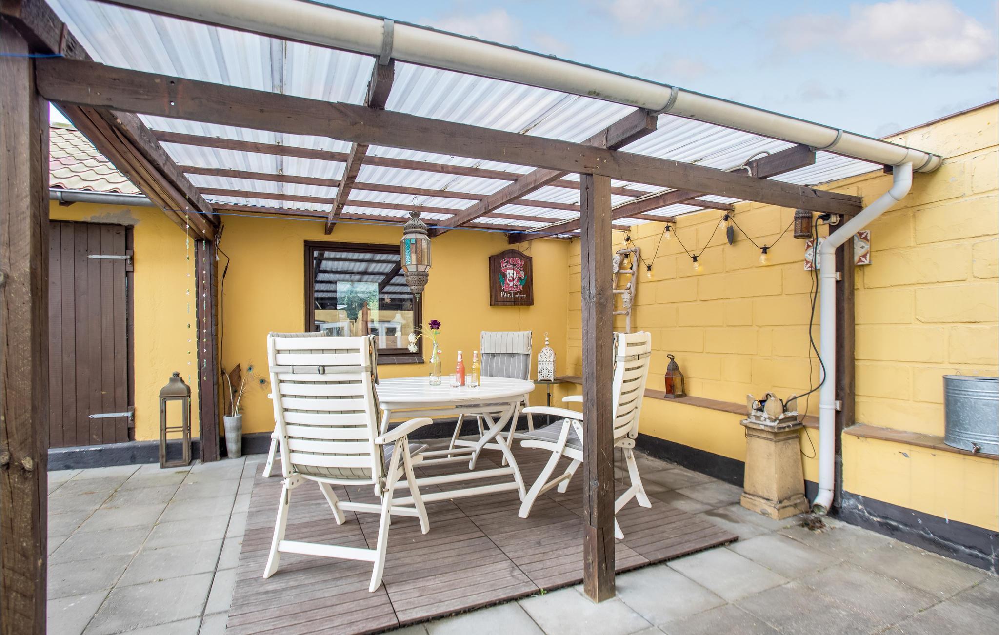 Gemütliche Ferienwohnung mit Garten und überdachter Terrasse nahe der Felsenküste in Hasle, ideal für erholsame Urlaubstage zu zweit.