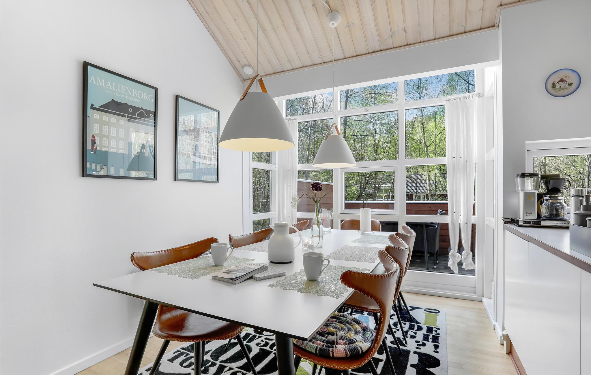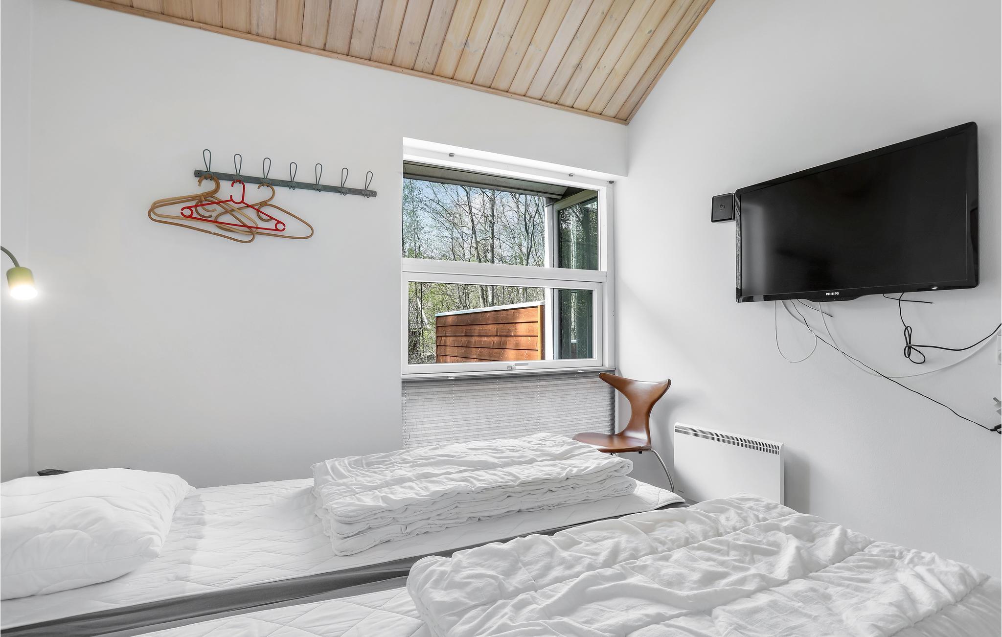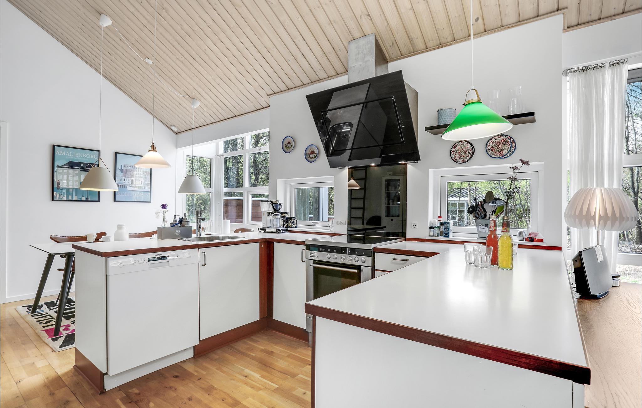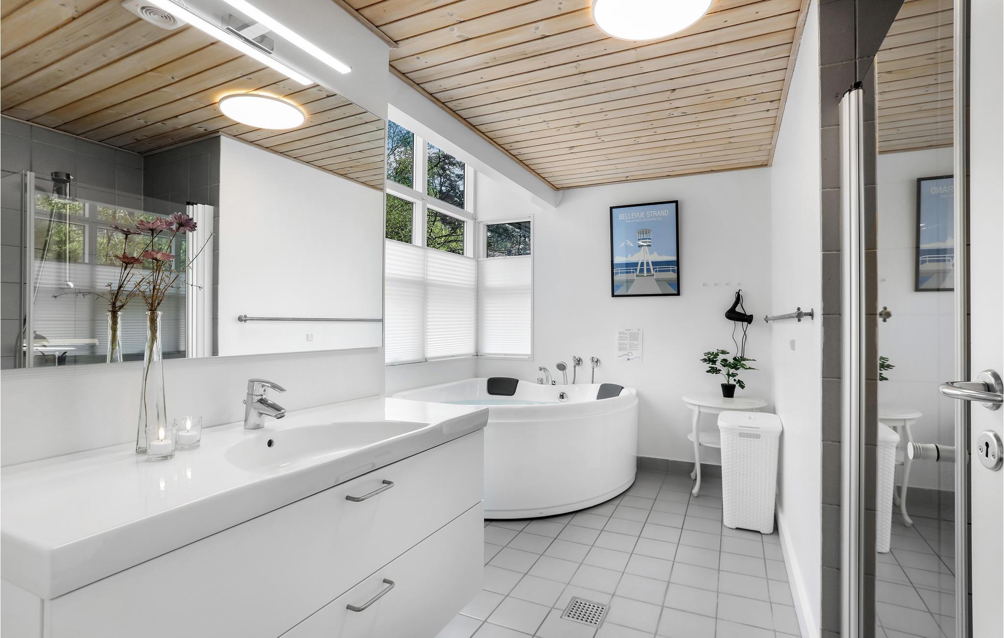 Dieses behagliche und geräumige Ferienhaus liegt in einer beliebten und kinderfreundlichen Ferienhaussiedlung unweit von Strand und Wald. Die helle und moderne Ausstattung umfasst auch ein gratis Internet. Die Decke im Wohnbereich liegt hoch, entspannen Sie hier im komfortablen Möbeln und erfahren Sie, wie eine gemütliche Urlaubsstimmung um sich greift. Auch der Kaminofen wird für eine angenehme Atmosphäre sorgen. In der offenen Küche haben Sie viel Platz zum Kochen und das gemeinsame Essen. Verwöhnen Sie sich auch im Whirlpool des großen Badezimmers. Vier große Schlafzimmer, Hauswirtschaftsraum, Waschmaschine, Trocker sind ebenfalls vorhanden. Richtig entspannen werden Sie auch auf der Terrasse direkt vor dem Wohnzimmer. Abends grillen Sie mit Blick auf den Wald. Wenn Sie vom puren Entspannen genug bekommen, bewegen Sie sich auf Rad- und Gehwegen durch das Gebiet Hasle Lystskov oder zum ausgezeichneten Sandstrand. Der hohe Komfort macht das Haus zu einer exzellenten Urlaubsbasis das ganze Jahr über.