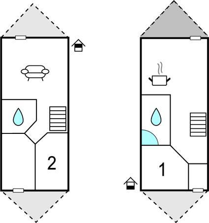Badezimmer 5m2 (nr. 1) - WC. Warmes und kaltes Wasser. Dusche