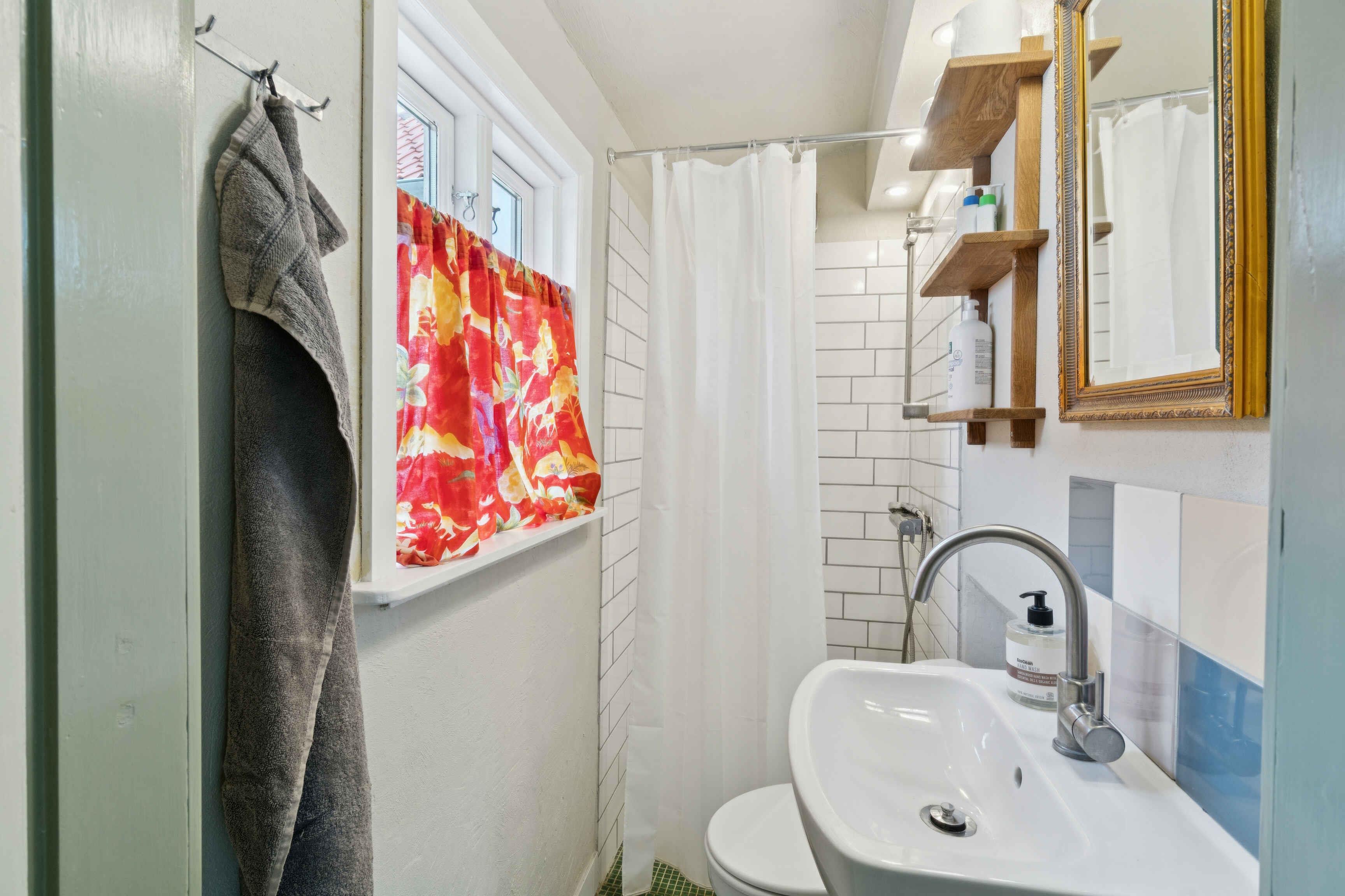 Ferienhaus mit Fokus auf Gemütlichkeit, Zusammenhalt und Naturerlebnisse. Wenn Sie es lieben, direkt in die fantastische Natur zu wandern, ohne erst das Auto starten zu müssen, ist dieses Haus genau das Richtige für Sie. Sie wohnen oben im kleinen, gemütlichen Dorf Vang und können direkt ins Abenteuer starten. Wir haben das Haus selbst nach nachhaltigen Prinzipien renoviert und mit einzigartigen Details versehen, sodass man sofort das Gefühl hat, zu Hause angekommen zu sein. Das Haus verfügt über einen großen Raum mit einem Doppelbett und einem Schlafsofa. Außerdem gibt es eine Küche mit einem schönen Essbereich, direkten Zugang zur Terrasse und Blick auf das Meer und den Sonnenuntergang. Neu renoviertes Bad und WC. Es gibt eine Wärmepumpe, einen Holzofen, ein TV, Gesellschaftsspiele und einen Lagerfeuerplatz.
