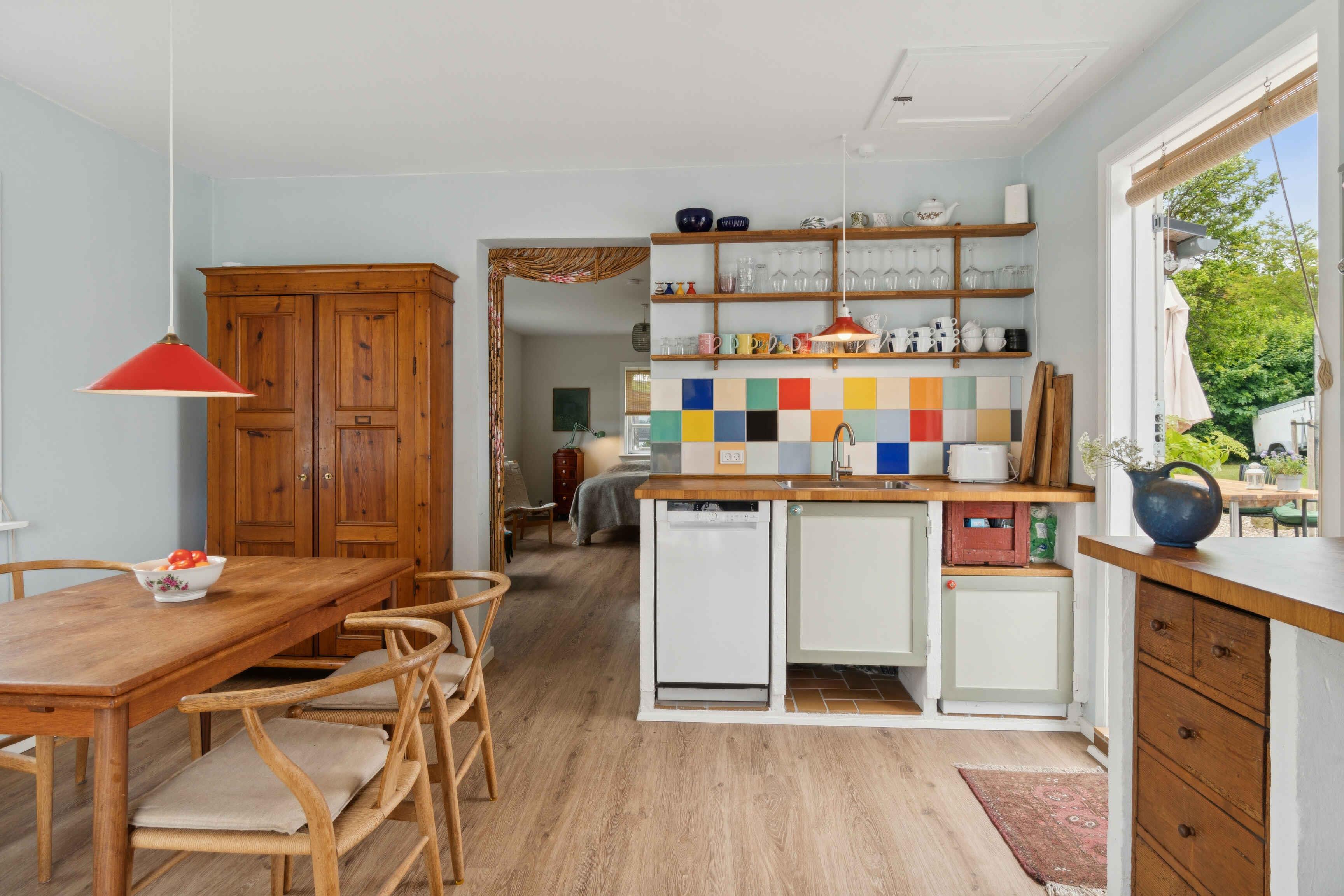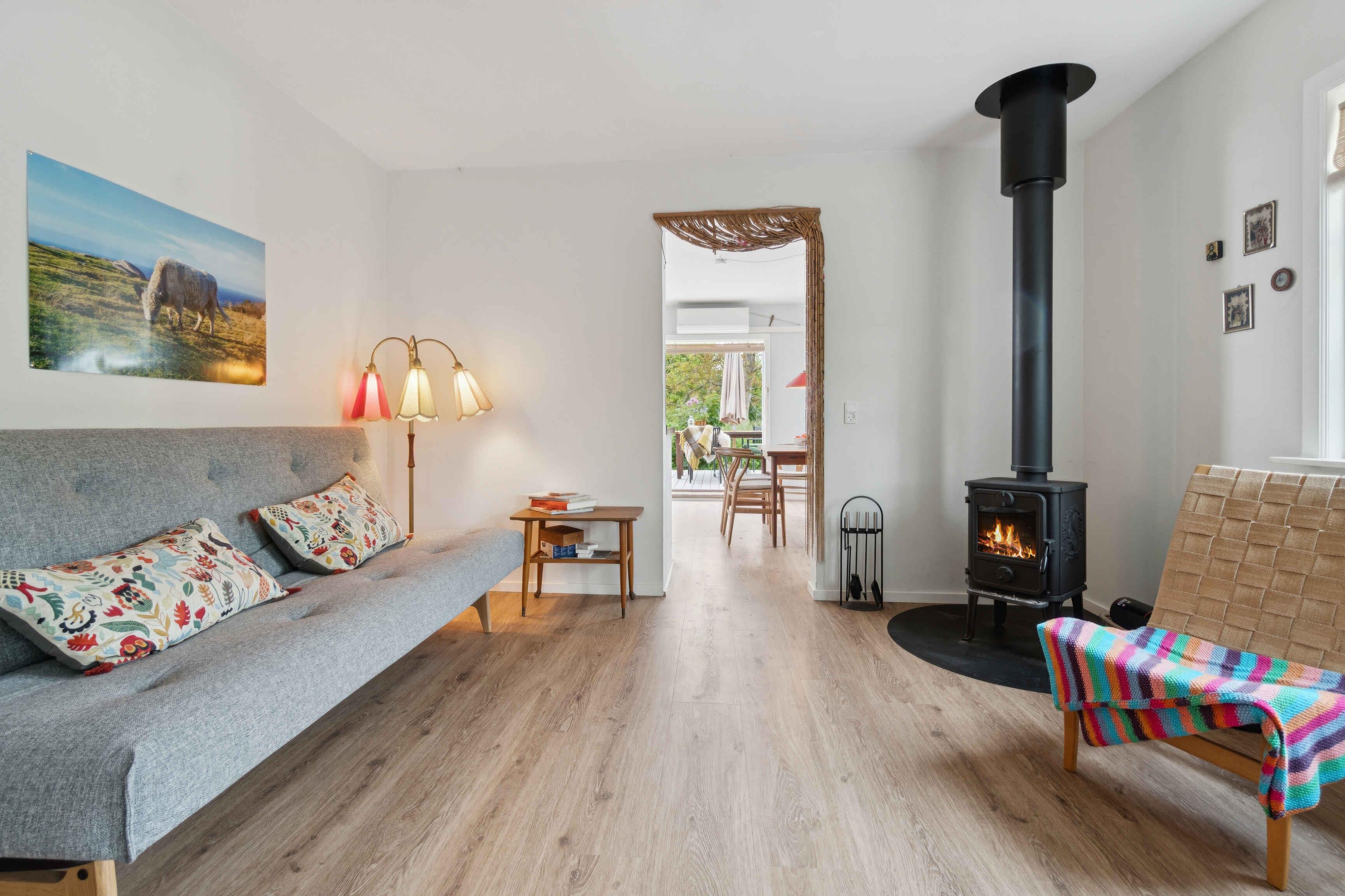 Gemütliches Ferienhaus hoch oben im schönen Vang, nur wenige Gehminuten von fantastischen Naturerlebnissen entfernt: Wanderungen zu Hammerhus, Ringebakkerne, Jons Kapel, Blåskinsdalen und Schwimmen bei Pieren mit einem schönen Strand und Steg.