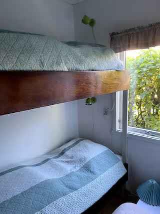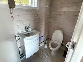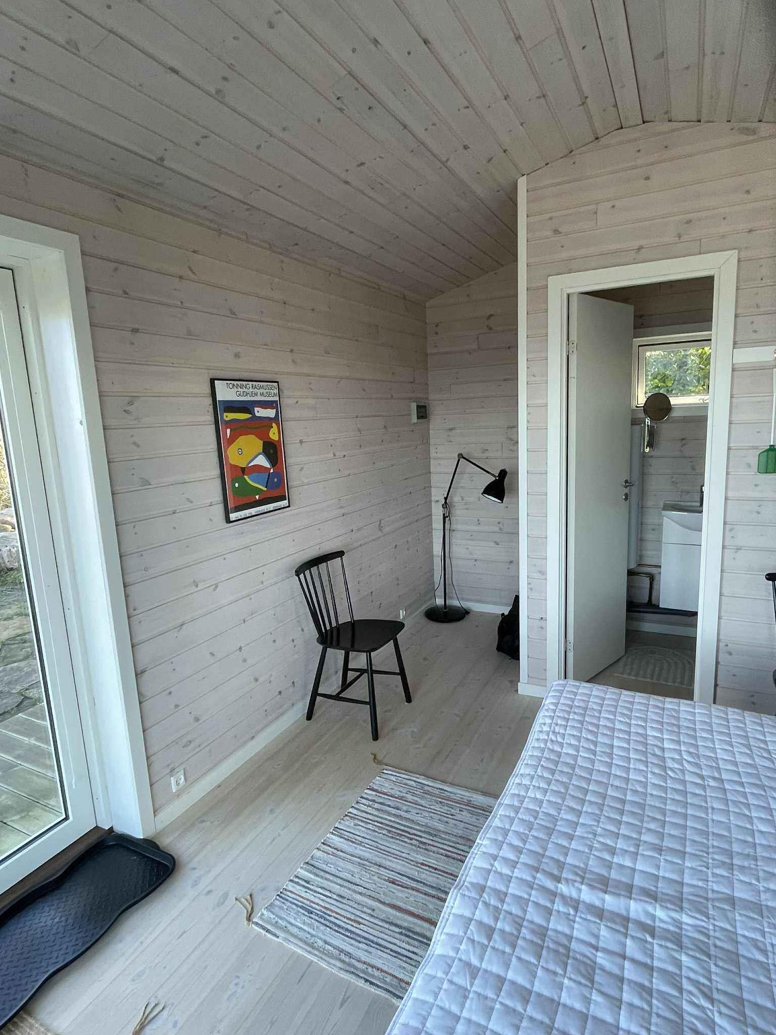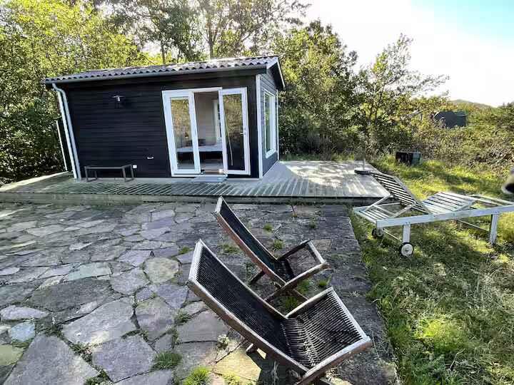 Sommerhuset er mindre og ældre, men fuld af charme - og omgivet af en både vild og smuk natur, med mange vandreruter langs kysten og gennem skoven til bl.a. Hammershus og Jons Kapel. Huset byder på et soveværelse med dobbeltseng samt et værelse med køjesenge, stue, køkken og toilet med håndvask. Køkkenet er et klassisk "sommerhus-køkken" med patina og alt det nødvendige til madlavning, men uden overflødige dikkedarer. Ved siden af huset ligger et moderne anneks (kun 3 år gammelt) med dobbeltseng (kan ændres til to enkeltsenge) og eget toilet. I forbindelse med annekset finder du en stor afskærmet udendørs bruser med koldt og varmt vand. Opvarmning i huset er via varmepumpe og brændeovn. Der er trådløst internet og TV med streaming (via Chromecast-enhed). Både ved huset og annekset er der terrasser hvor du kan nyde den fantastiske udsigt over Østersøen med (måske) Bornholms smukkeste solnedgange. Adgang til boligen foregår via en lidt stejl sti på 90 m. Gåafstand til den lille havn hvor man kan bade og hvor der også er en café (café Solvang) og en frokost restaurant (Lunch Bornholm). Ligeledes indenfor gåafstand finder du Vang Pier med bademuligheder - her er der en lille sand strand og vippe. Ved Vang Pier finder du Ringebakkebruddene, et tidligere stort stenbrud, der er omdannet til et storslået og imponerende rekreativt område med klatring, vandre- og mountainbikeruter. Vang ligger midt i et af Bornholms smukkeste områder, Nordbornholm, og er omgivet af klipper, skov og hav, og du har fra huset og terrasserne frontpladser til nogle af Bornholms smukkeste solnedgange over Østersøen. Sommerhuset er en perfekt base for naturelskere og solnedgangsjægere.