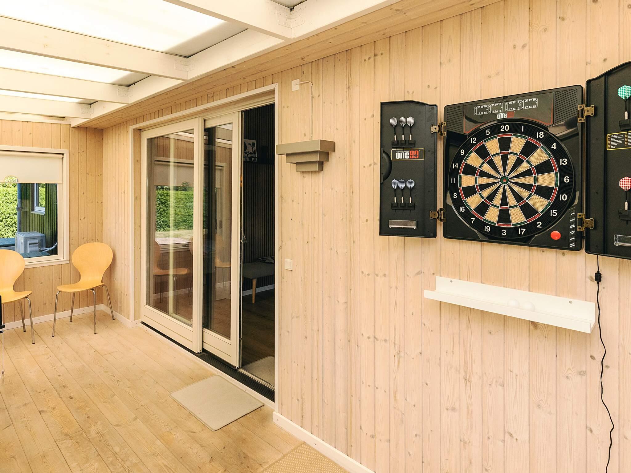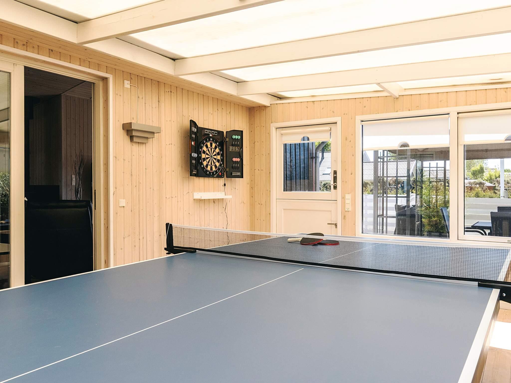 Das Badezimmer verfügt über eine Dusche, ein Waschbecken und eine Toilette. Eine Elektroheizung und eine Luft-Luft-Wärmepumpe sorgen das ganze Jahr über für Komfort. Ein eingezäunter Garten mit Gartenmöbeln und einem Holzkohlegrill lädt zu entspannten Nachmittagen ein. Im hellen Wintergarten können Gäste Tischtennis oder Darts spielen. Das Haus verfügt außerdem über dänische und deutsche Fernsehsender und ist komplett rauchfrei.