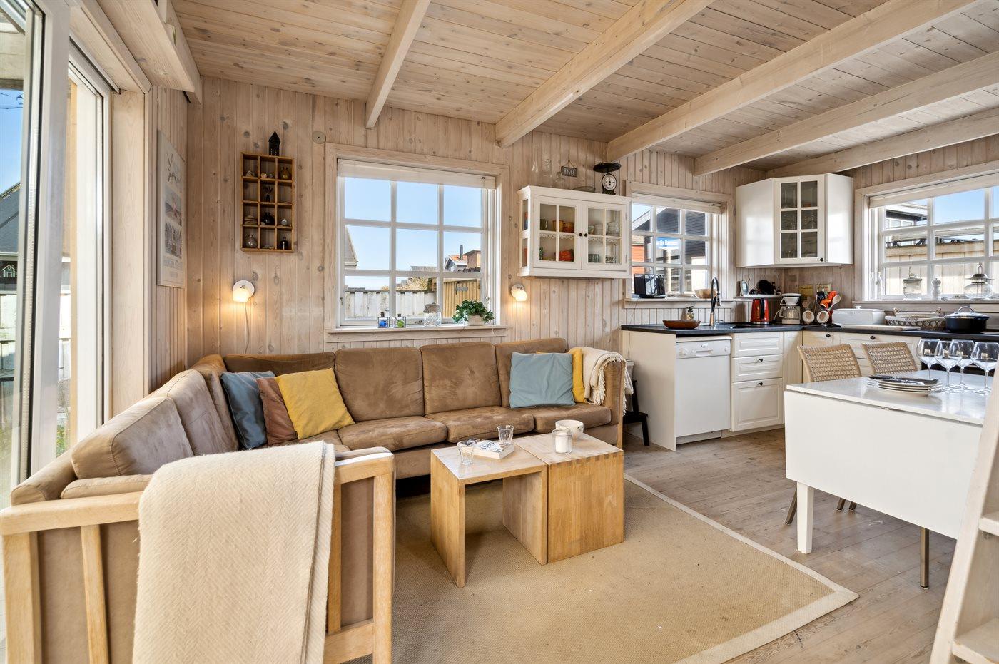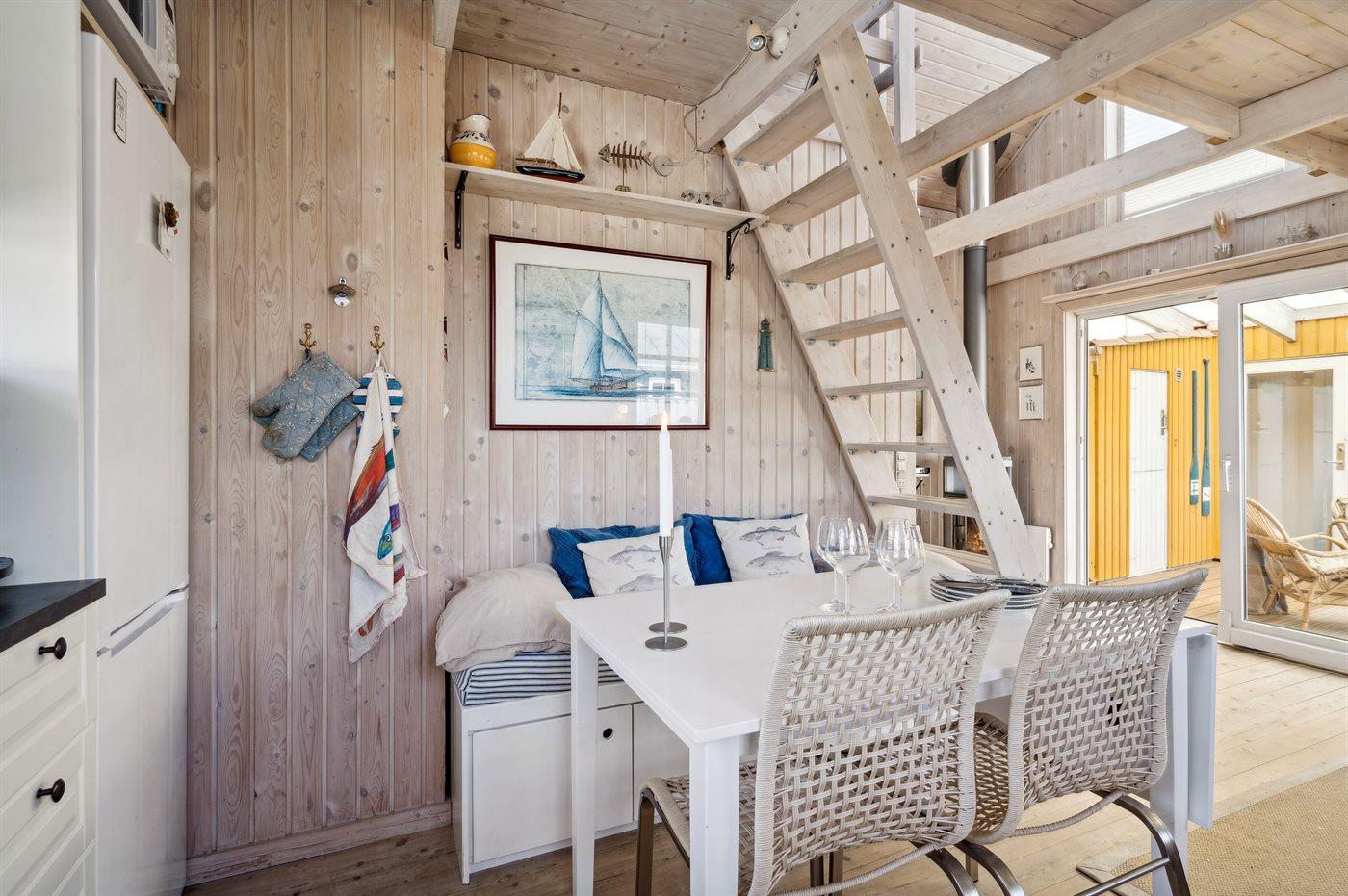 Mit einer wirklich schönen Lage, nur 20 Meter vom Strand entfernt, liegt dieses Ferienhaus perfekt sowohl in Bezug auf die Privatsphäre als auch auf die Nähe zum Strand in Hasmark. Das ganze Haus ist von einem Bretterzaun umgeben, und hinter dem Haus gibt es eine schöne überdachte Terrasse und eine kleine Rasenfläche, die völlig ungestört liegt.