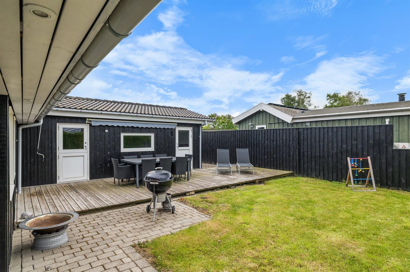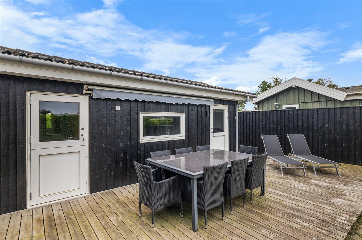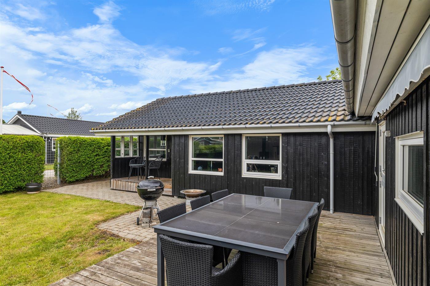 Gemütliches Ferienhaus nahe dem Strand von Hasmark. Das Haus ist modern und hell eingerichtet und verfügt über mehrere ungestörte Terrassen rund um das Haus.