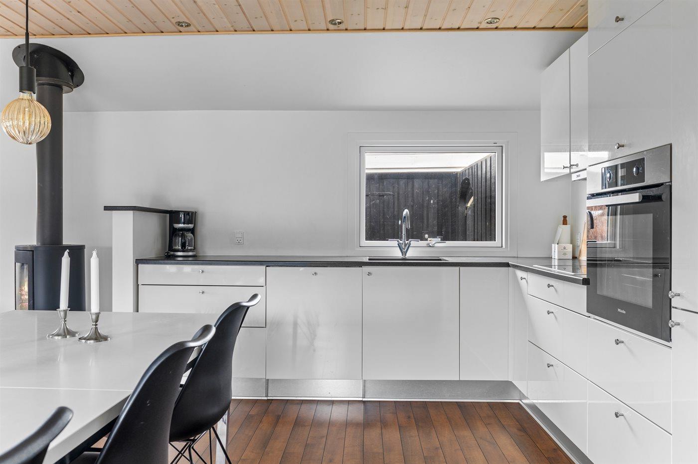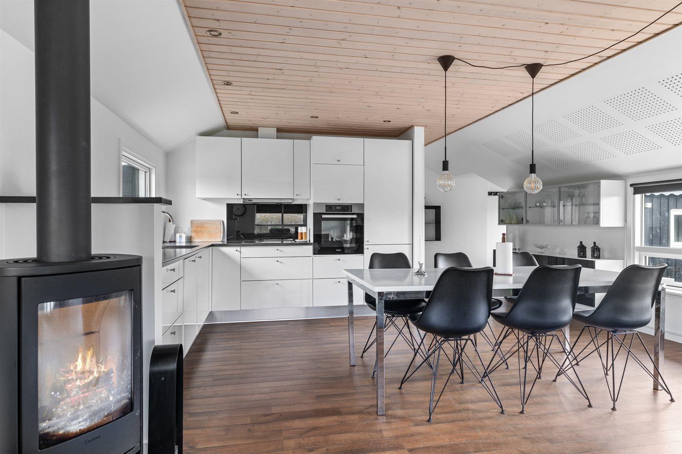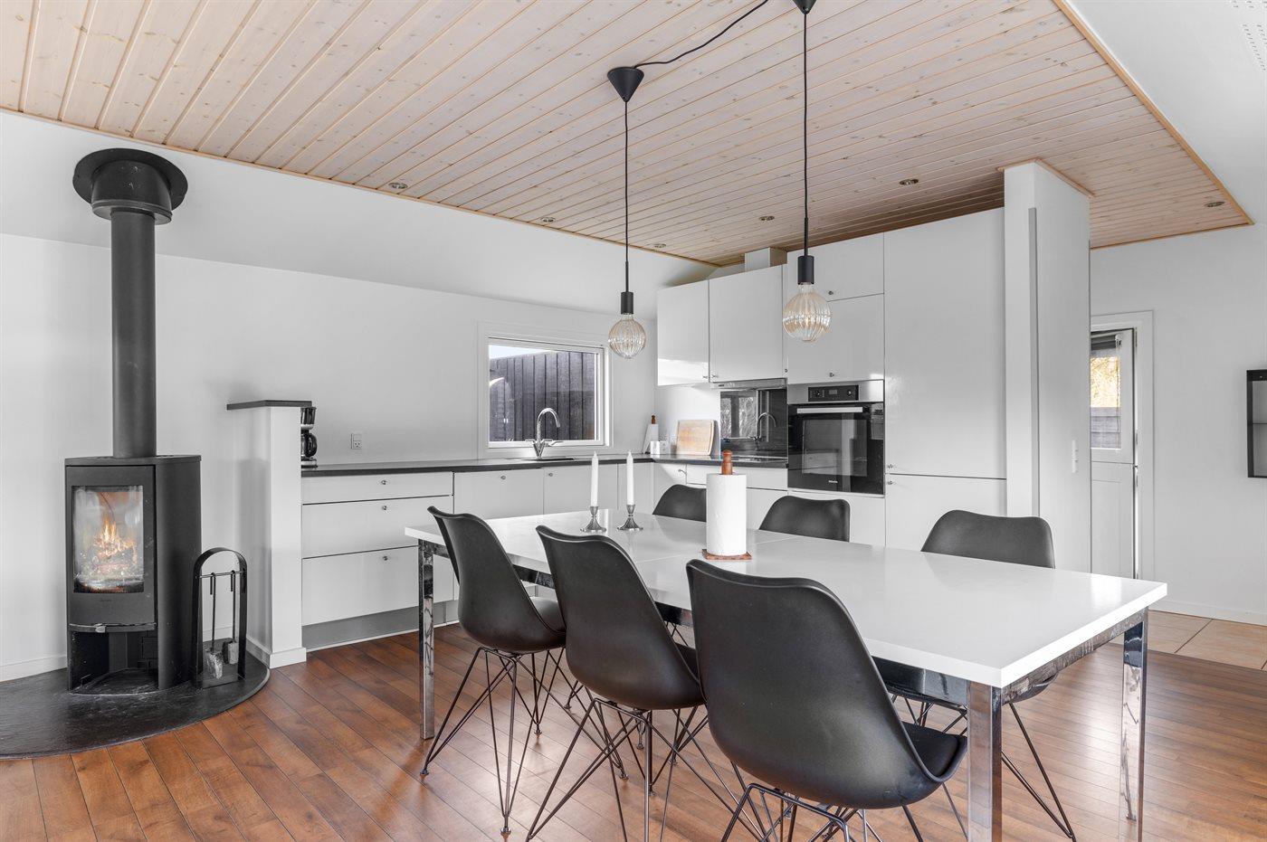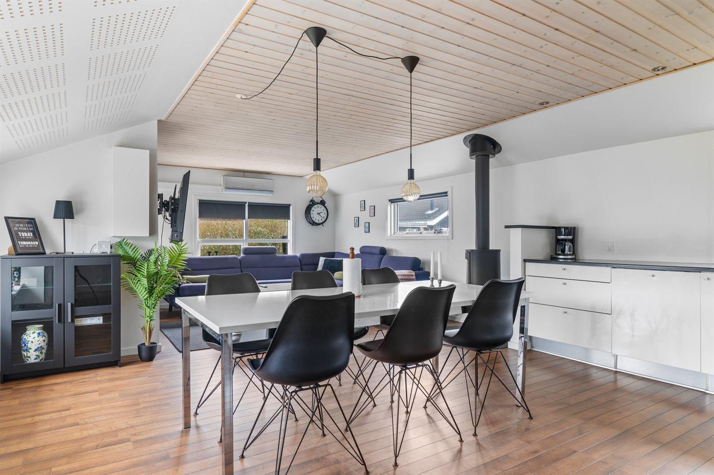 Gemütliches Ferienhaus nahe dem Strand von Hasmark. Das Haus ist modern und hell eingerichtet und verfügt über mehrere ungestörte Terrassen rund um das Haus.