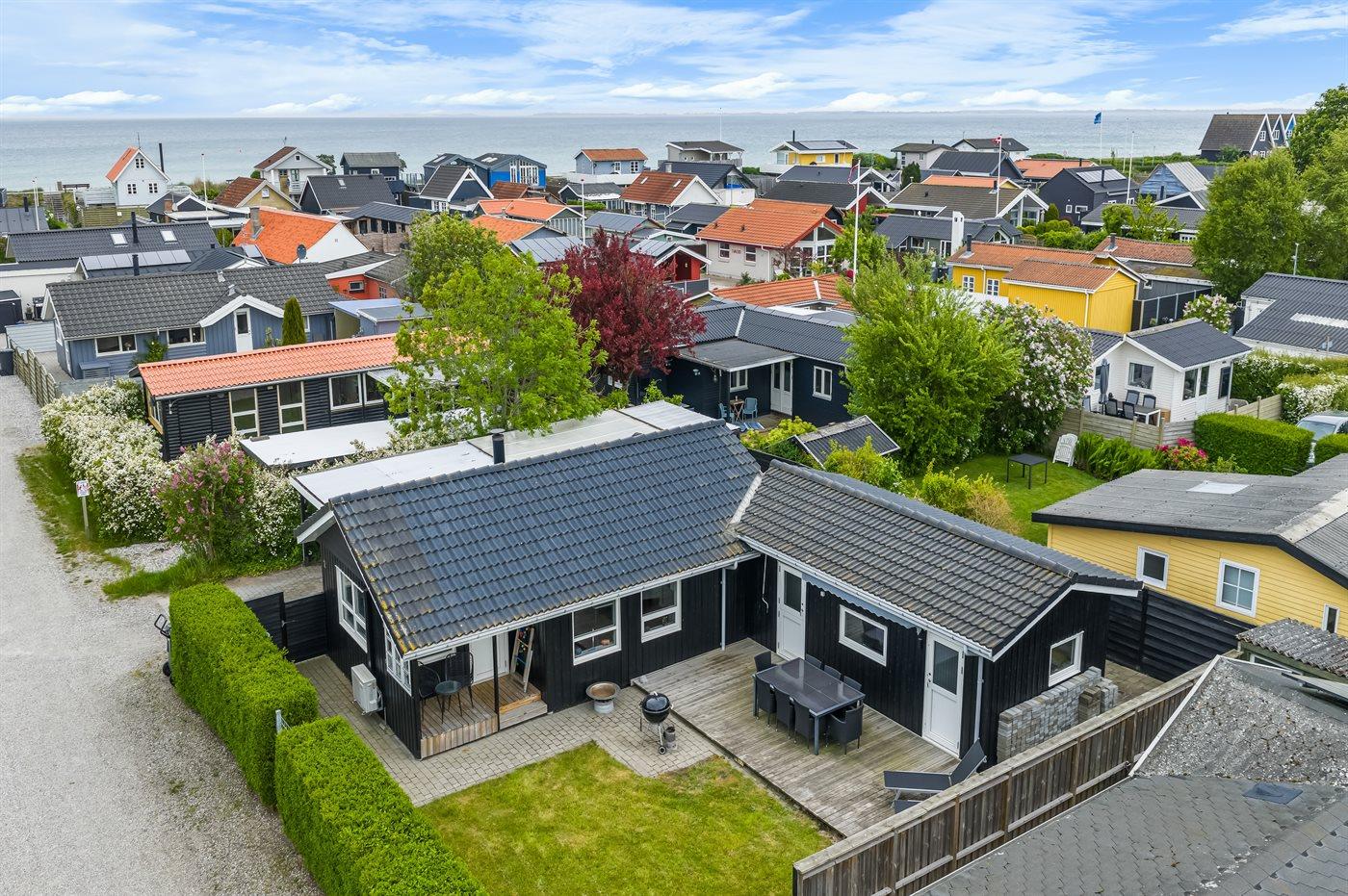 Gemütliches, modern eingerichtetes Ferienhaus in Hasmark, nur 120 m vom Meer entfernt, mit mehreren Terrassen und eingezäuntem Garten.