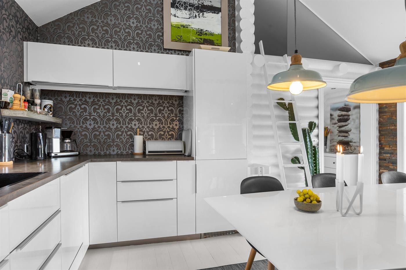 Die Küche ist mit Kühlschrank ausgestattet. Außerdem gibt es 4 Induktions-Kochzonen, Umluftofen, Mikrowelle sowie Geschirrspüler.