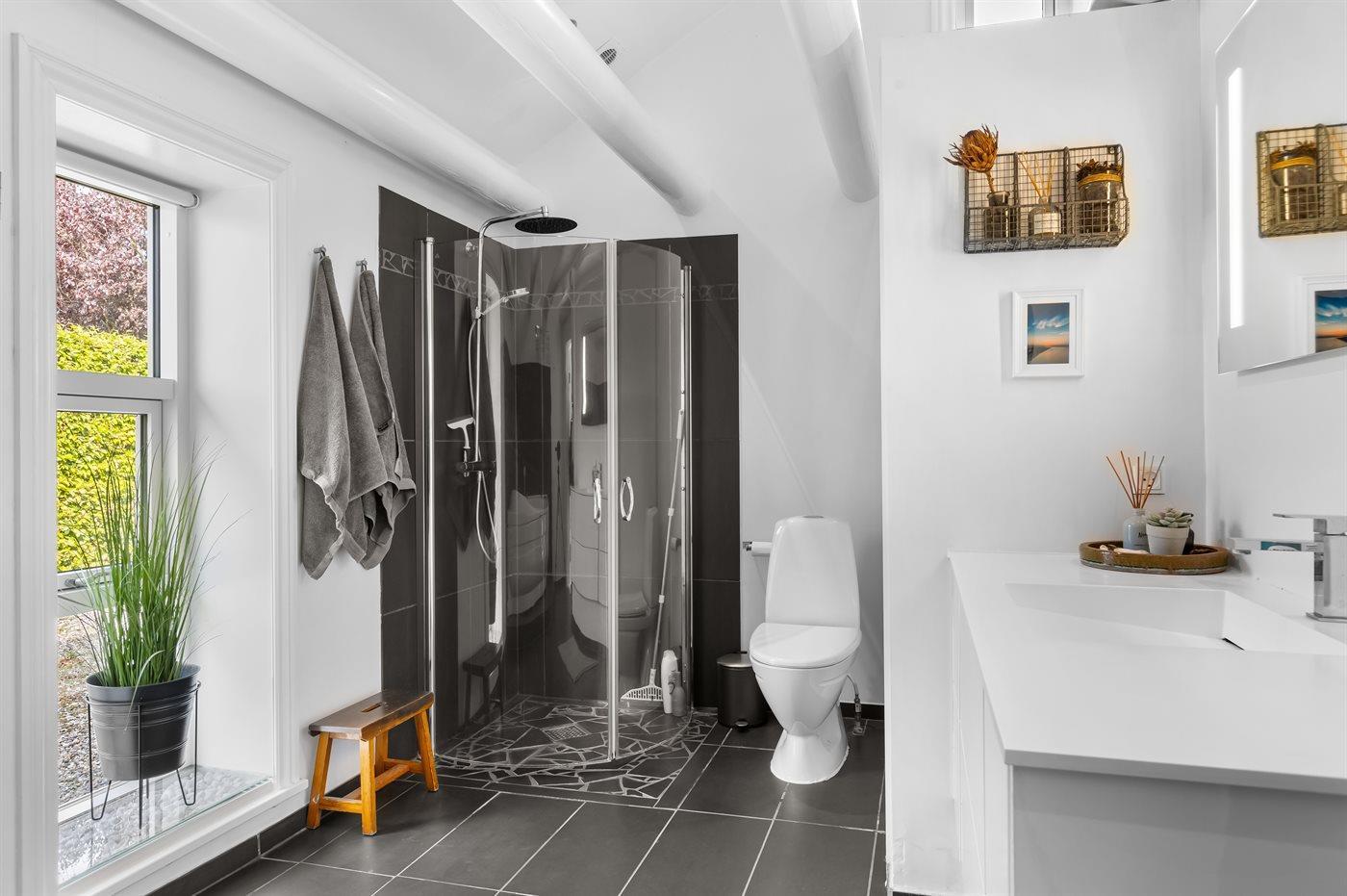 Es gibt 1 Badezimmer mit Duschnische und 2 Toiletten, davon 1 Gästetoilette. Fußbodenheizung in 1 Badezimmer. Fußbodenheizung in der Gästetoilette.
