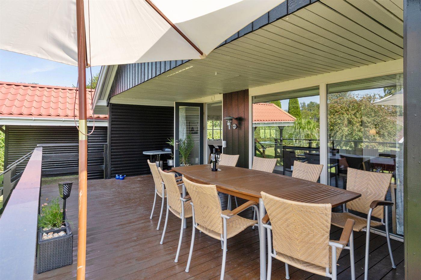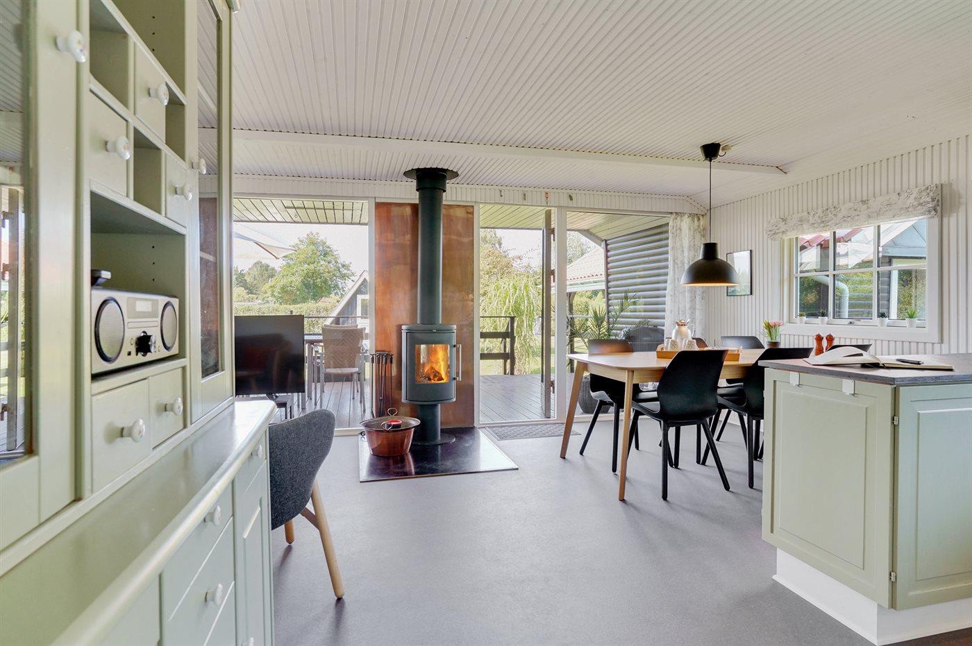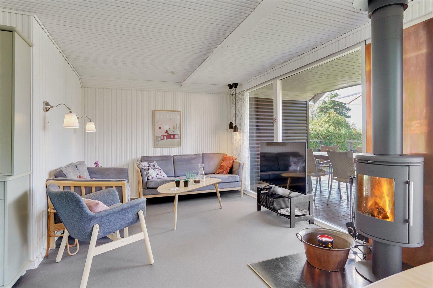 Modernes Ferienhaus in Hasmark, nur 400 m vom Meer und Fjord entfernt, mit gemütlichem Kamin und Terrasse.