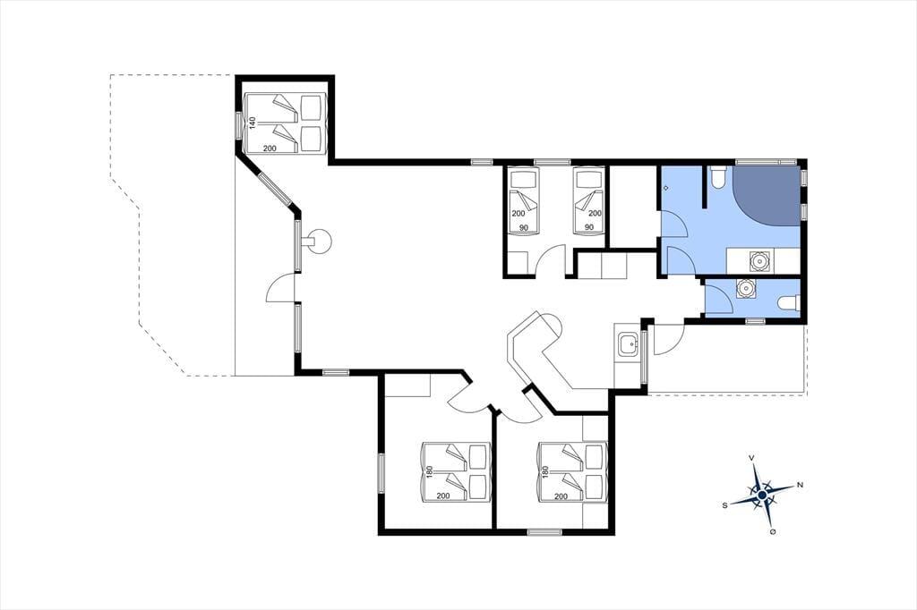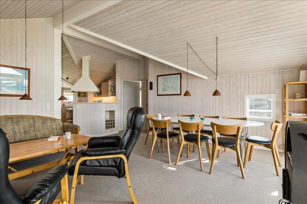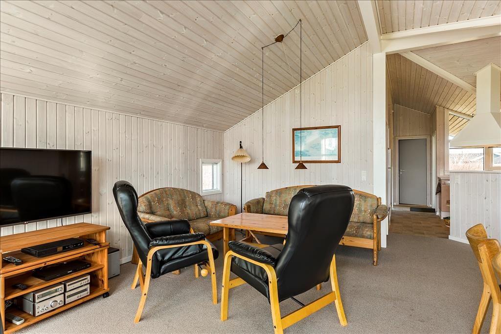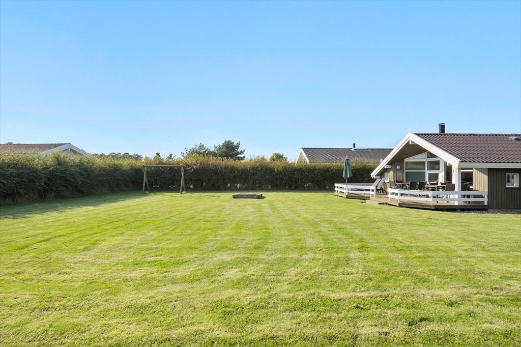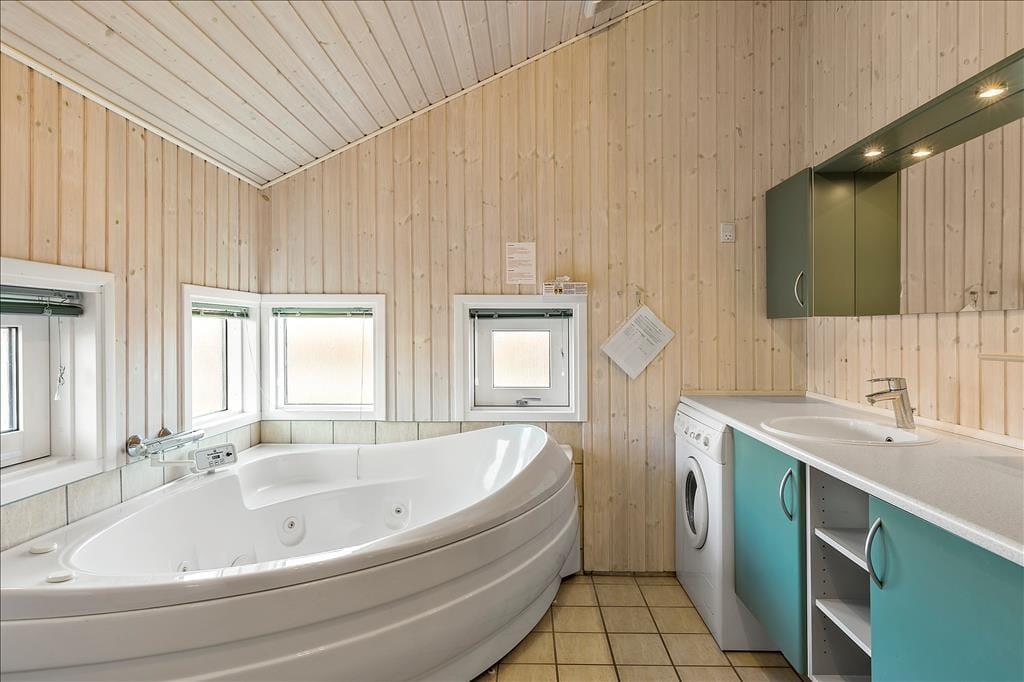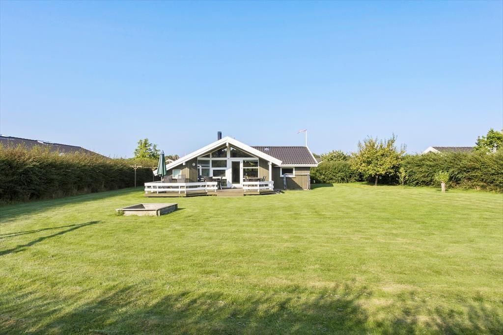 Schönes Holzhaus mit Whirlpool und Sauna 200 m vom kinderfreundlichen Sandstrand entfernt in dem idyllischen Ferienhausgebiet Hasmark Strand gelegen. Das Haus ist gemütlich eingerichtet mit einem geräumigen Wohnzimmer mit Brennofen, Alkoven und großen Panoramafenstern. Vom Wohnzimmer aus Zugang zur großen, teilweise überdachten Holzterrasse. Moderne, zum Wohnzimmer hin offene Küche. 3 schöne Schlafräume, Badezimmer mit Whirlpool und Sauna sowie ein Gäste-WC.