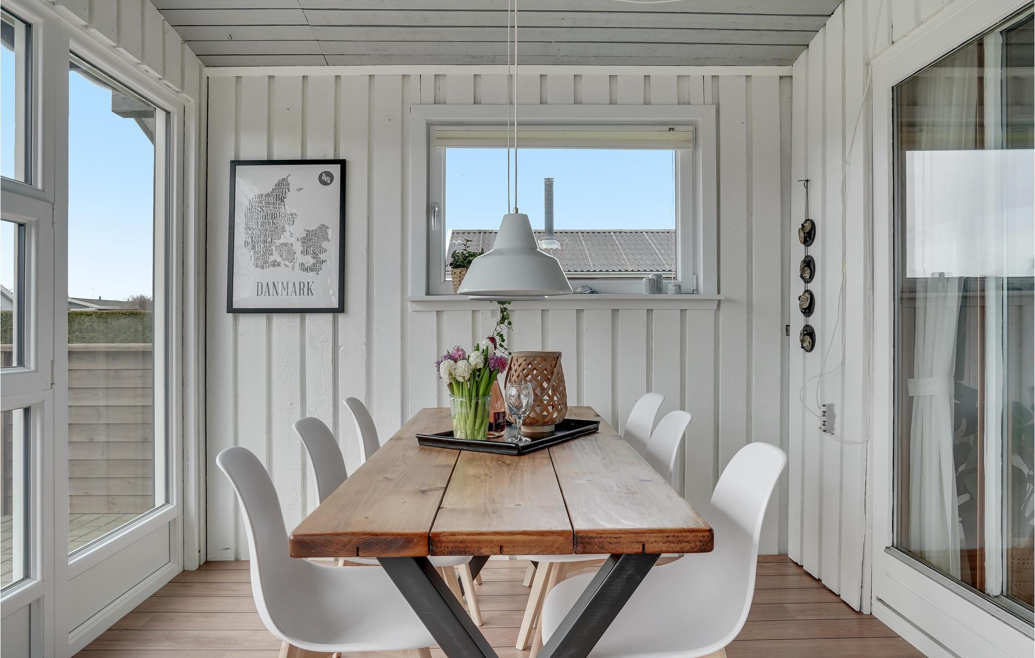 Die im natürlichen Holz verkleidete Decke verleiht dem Raum ein sehr harmonisches und entspannendes Ambiente, in welchem Sie es sich mit Ihrer Familie gemütlich machen können. Dieses viel Raum bietende Ferienhaus lädt ein sich mit allen Mitreisenden am Morgen an den wundervollen modernen Tisch zu setzen und gemeinsam den Tag zu starten, wie auch die bequeme Sofaecke einen feinen bequemen Platz darlegt. Im Garten können Sie sich auf einige Grilltage mit Ihren Liebsten freuen und schöne unterhaltsame Tage mit Kartenspielen auf ihrer offenen Terrasse unternehmen. In nur 200 m erreichen Sie einen Sandstrand, und in nur 8 km haben Sie die nächste Stadt Otterup gelegen. Im Gebiet rund um das Ferienhaus können Sie gut spazieren, radeln oder einfach auf Ihre Weise die Natur genießen.