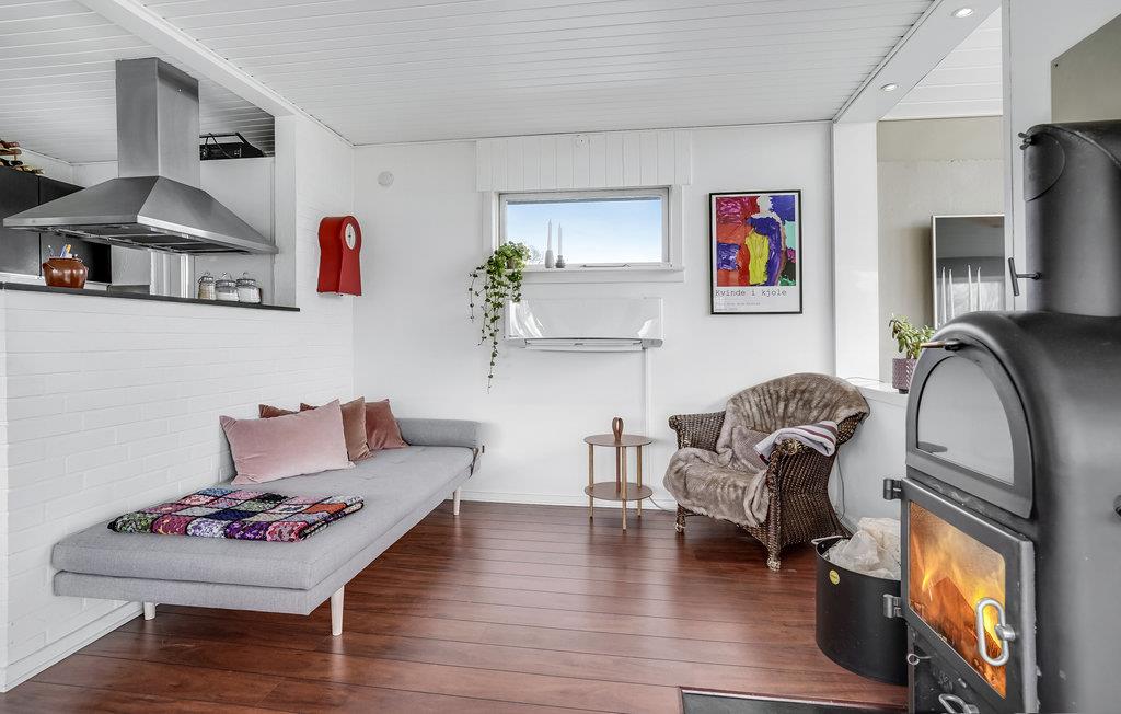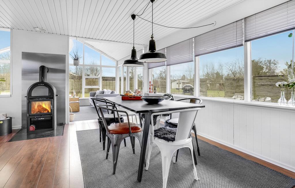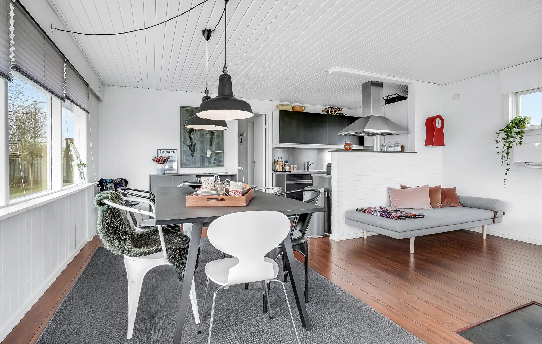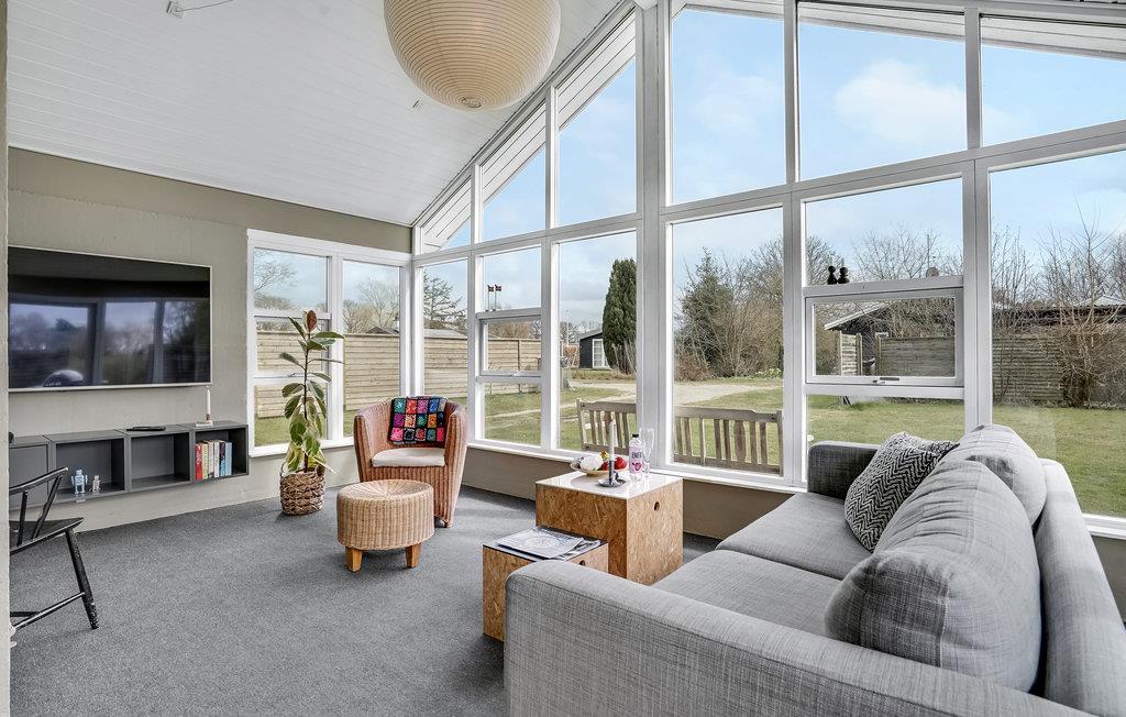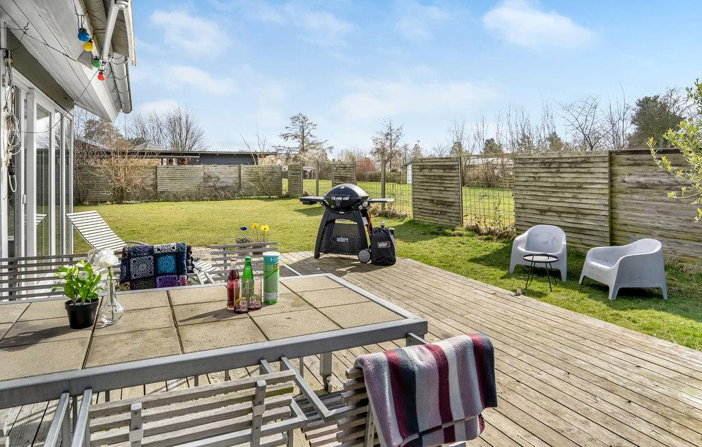 Entspannen Sie im hellen, stilvollen Ferienhaus nahe Hasmark Strand mit Kamin und großem Garten.