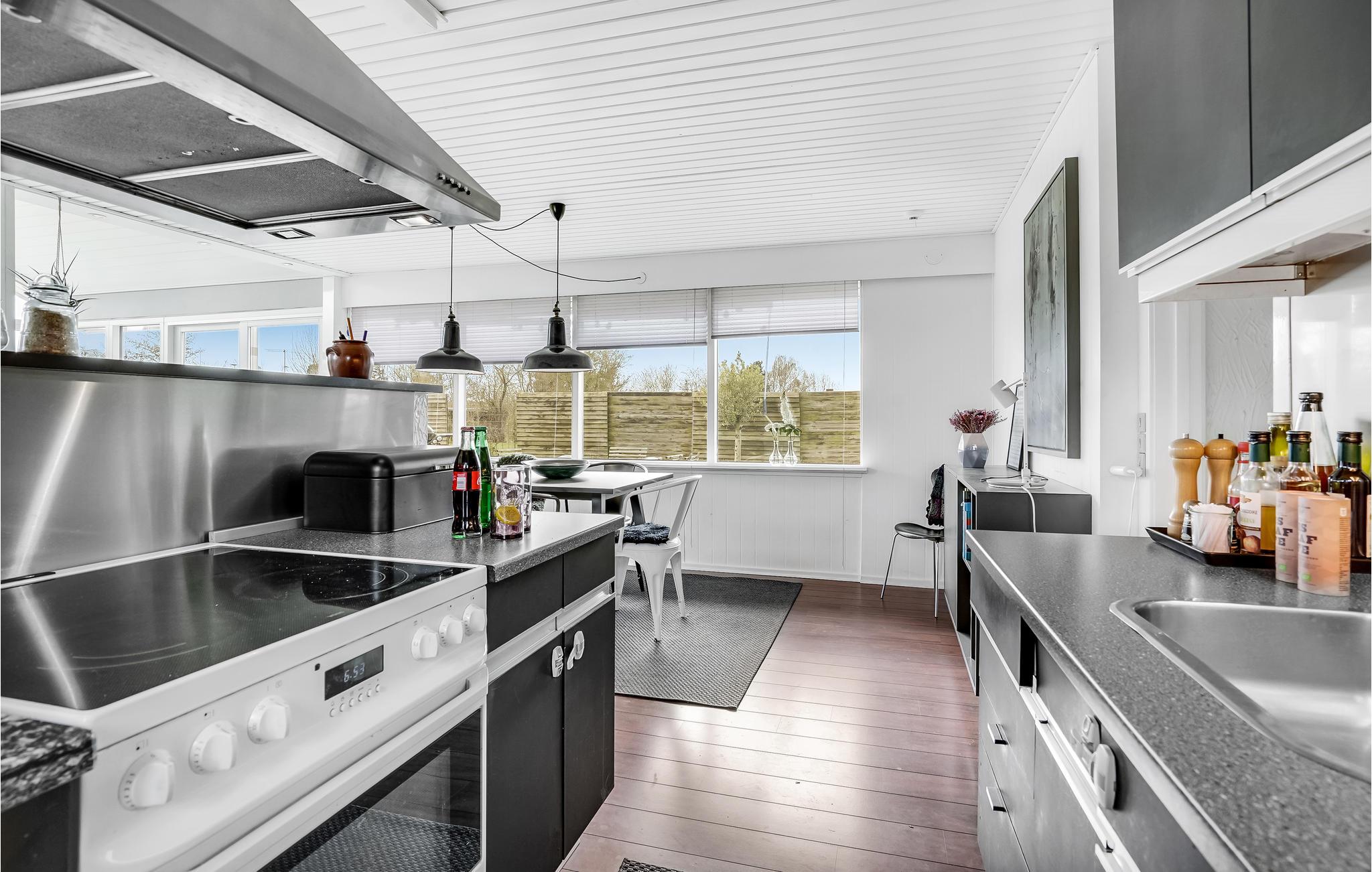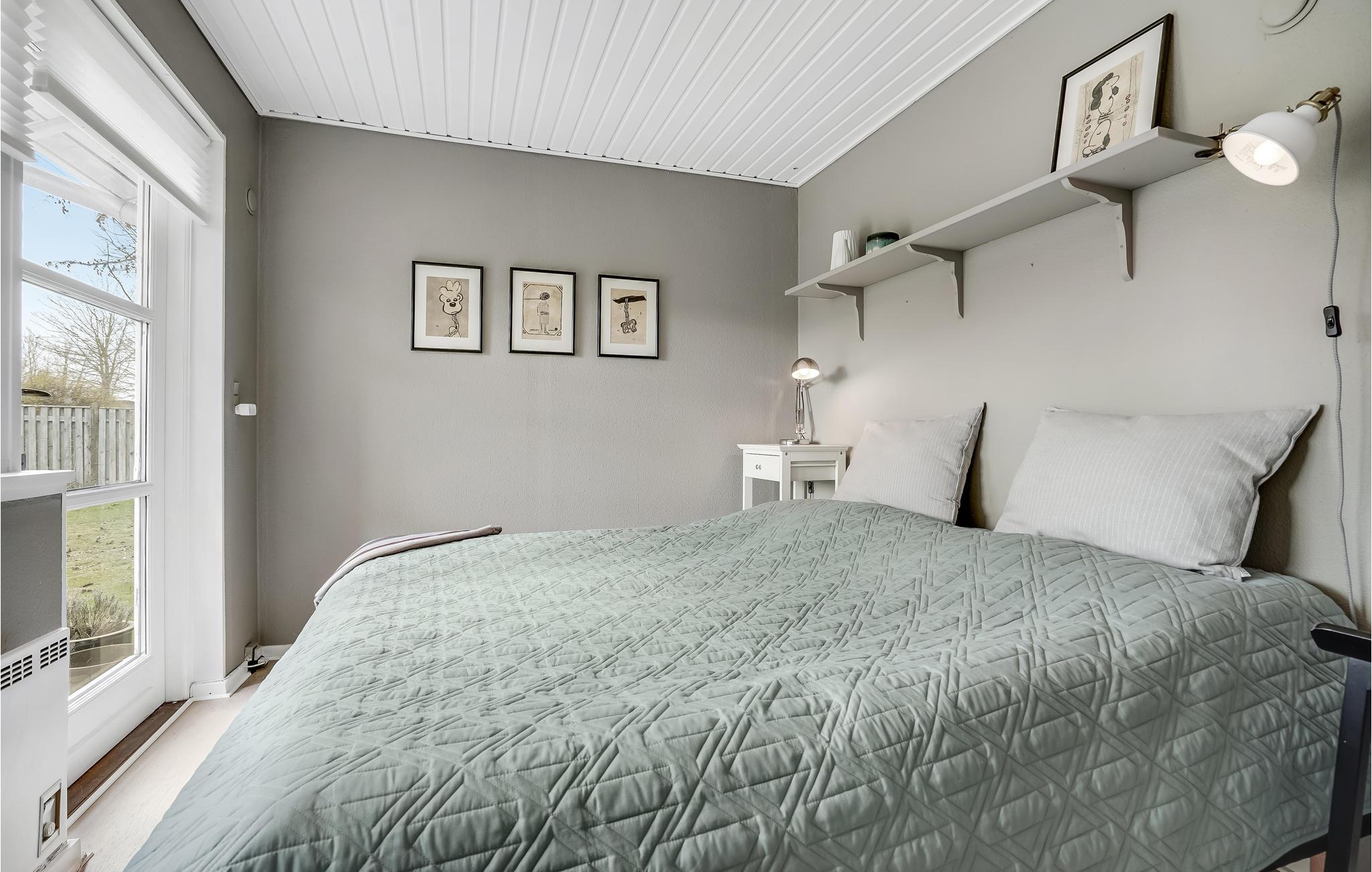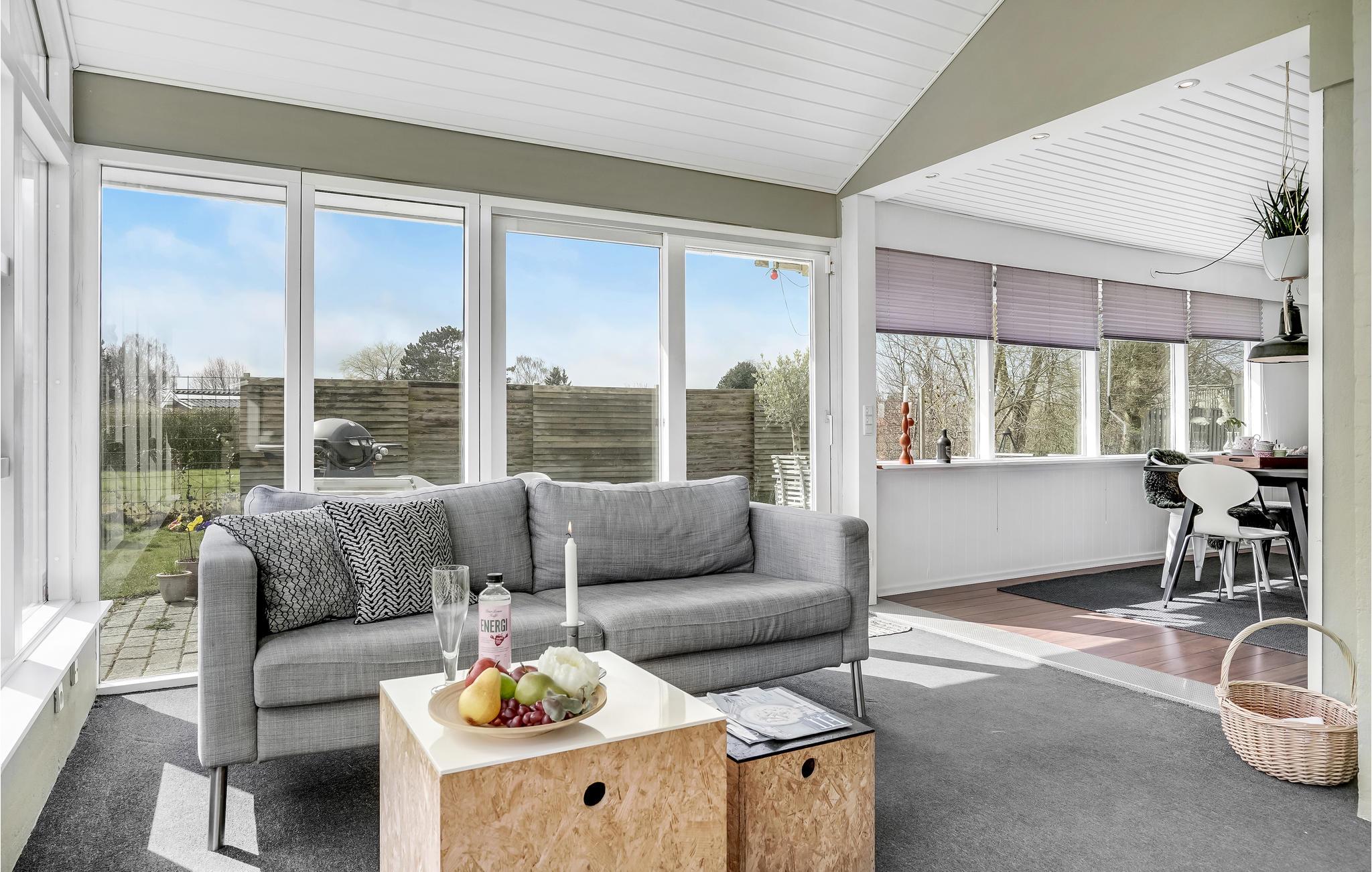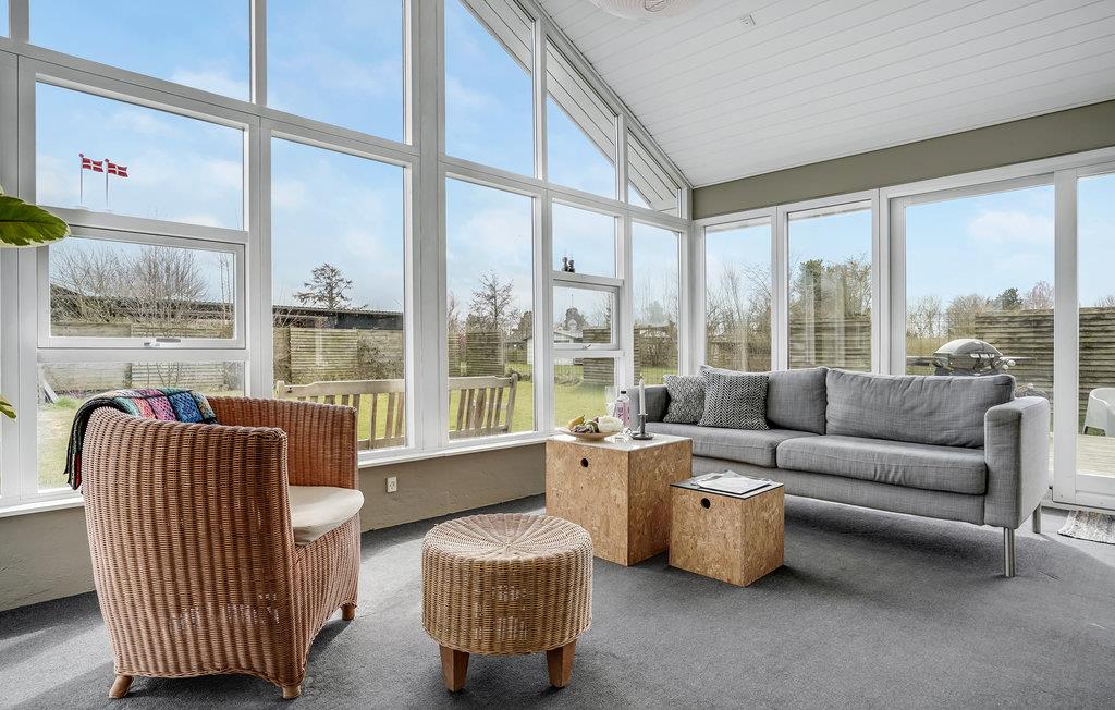 Entspannen Sie im hellen, stilvollen Ferienhaus nahe Hasmark Strand mit Kamin und großem Garten.