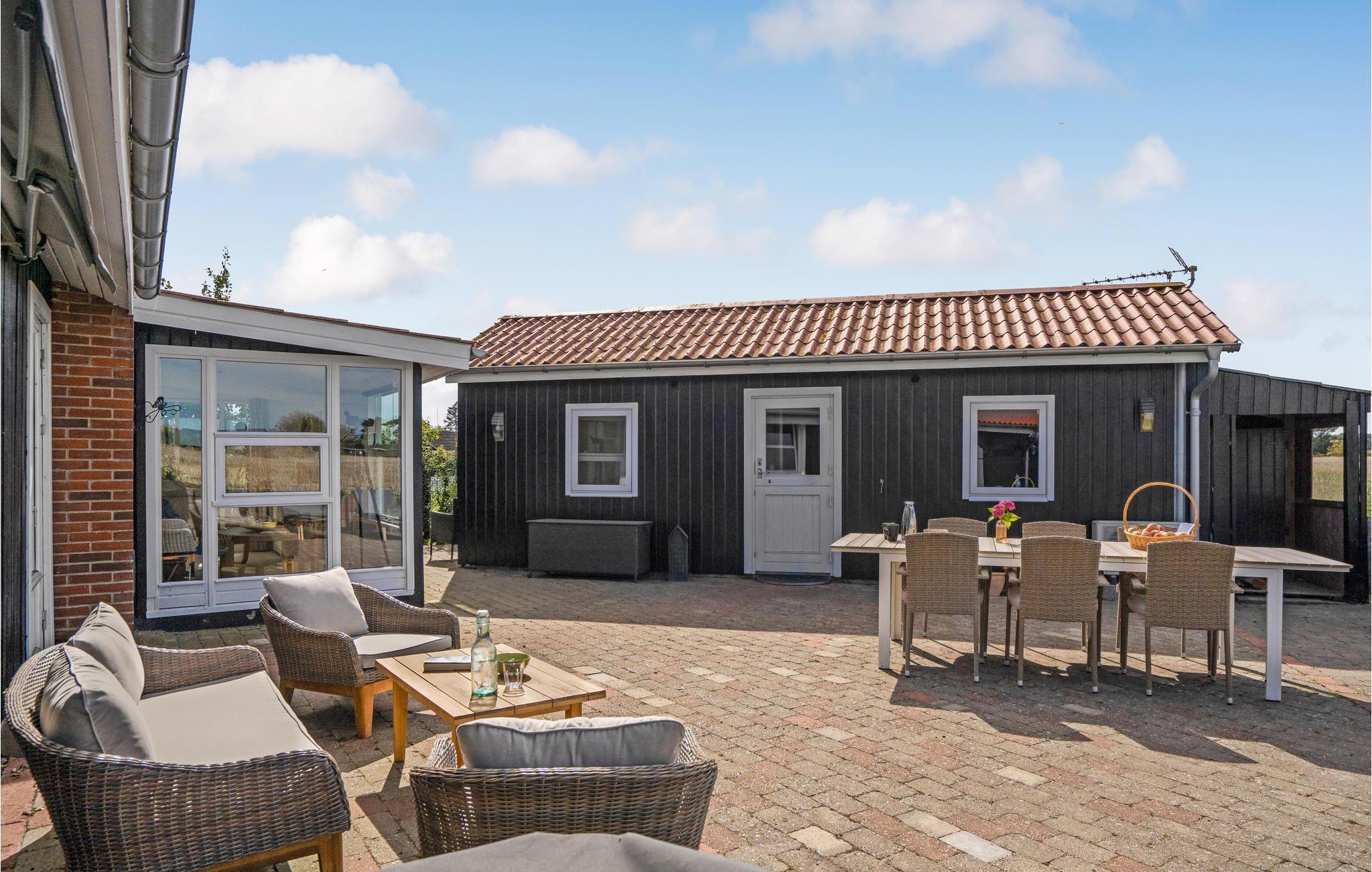 Charmantes Ferienhaus nahe Hasmark Strand mit zwei Gebäuden und großzügiger Terrasse für erholsame Ferien.