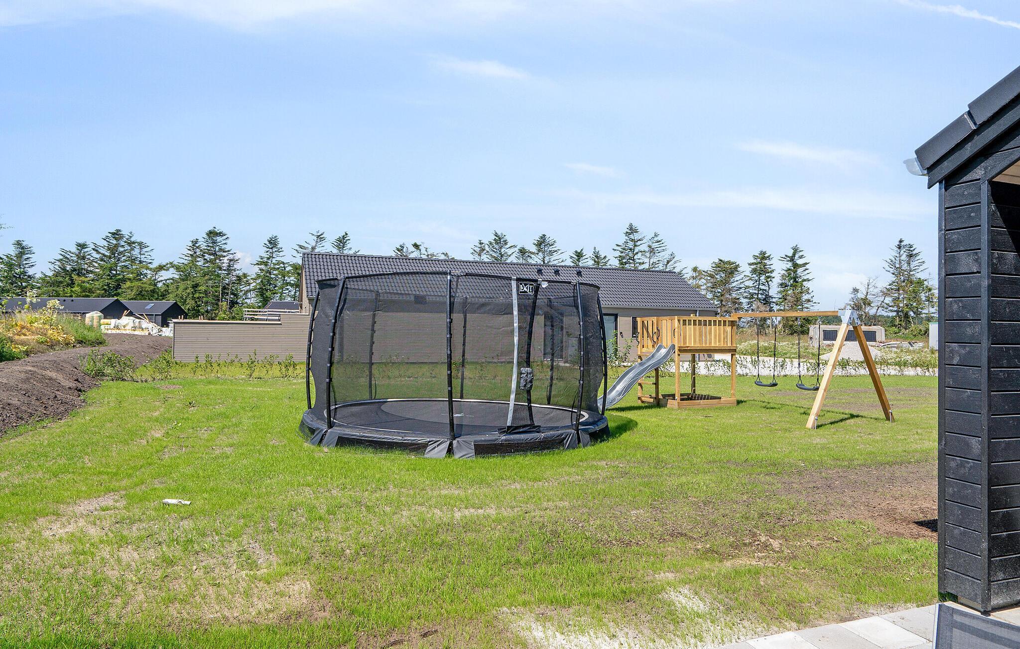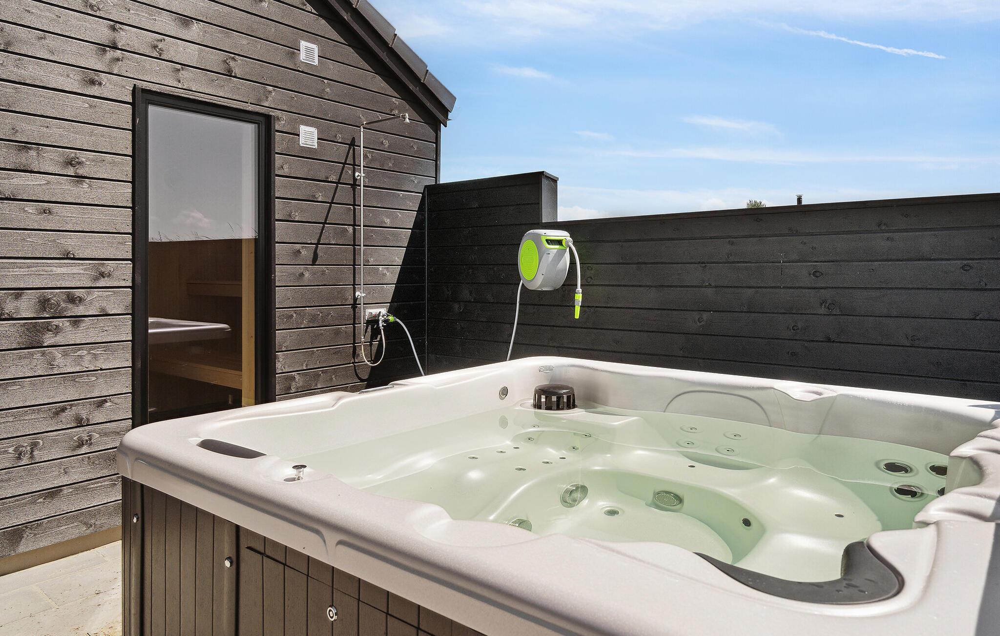 Entspannen Sie auf der Terrasse in der hauseigenen Wellnesszone mit Outdoor-Whirlpool, Kaltwasserbecken für Mutige, Außendusche und Sauna. Genießen Sie auch Ihre Mahlzeiten draußen und nutzen Sie die bequemen Gartenmöbel und den Grill. Während die Erwachsenen entspannen, spielen die Kinder im Garten auf dem Trampolin, schaukeln oder toben im Spielturm.