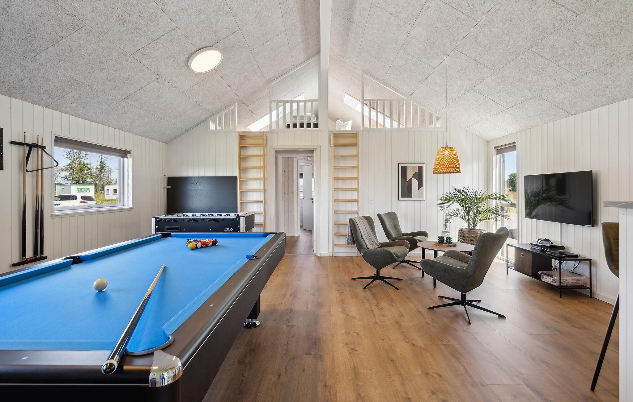 Starten Sie mit einer Partie Billard, Tischtennis, Tischfußball oder Dart im hauseigenen Aktivitätsraum in den Tag. Zwischen den Matches lädt die gemütliche Sofaecke zum Entspannen ein, ideal auch für Zuschauer, die das Geschehen verfolgen möchten. Bereiten Sie Ihre Mahlzeiten in der zentral gelegenen Küche im offenen Wohn- und Essbereich zu. Während die Köchinnen und Köche des Hauses leckere Gerichte zaubern, können sich die übrigen Gäste in der Sofaecke mit einem Glas Wein entspannen oder eine Runde Karten am langen Esstisch spielen. Wer sich körperlich betätigen möchte, findet in der Poolabteilung das passende Angebot.