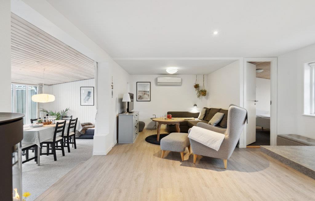 Willkommen am beliebten Hasmark Strand und kommen Sie in diesem hellen und gepflegten Ferienhaus, von dem aus Sie fast bis zum Strand springen können., zur Ruhe. Gemeinsam mit Ihren Lieben können Sie das helle Innere des Hauses zu Ihrem Zuhause machen und sich rundum wohlfühlen. Die gute Ausstattung lässt Sie nichts vermissen und lädt zu Kochabenden bei einem prasselnden Ofenfeuer ein.