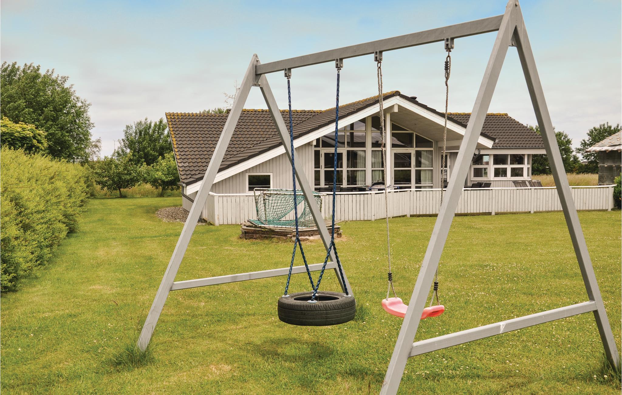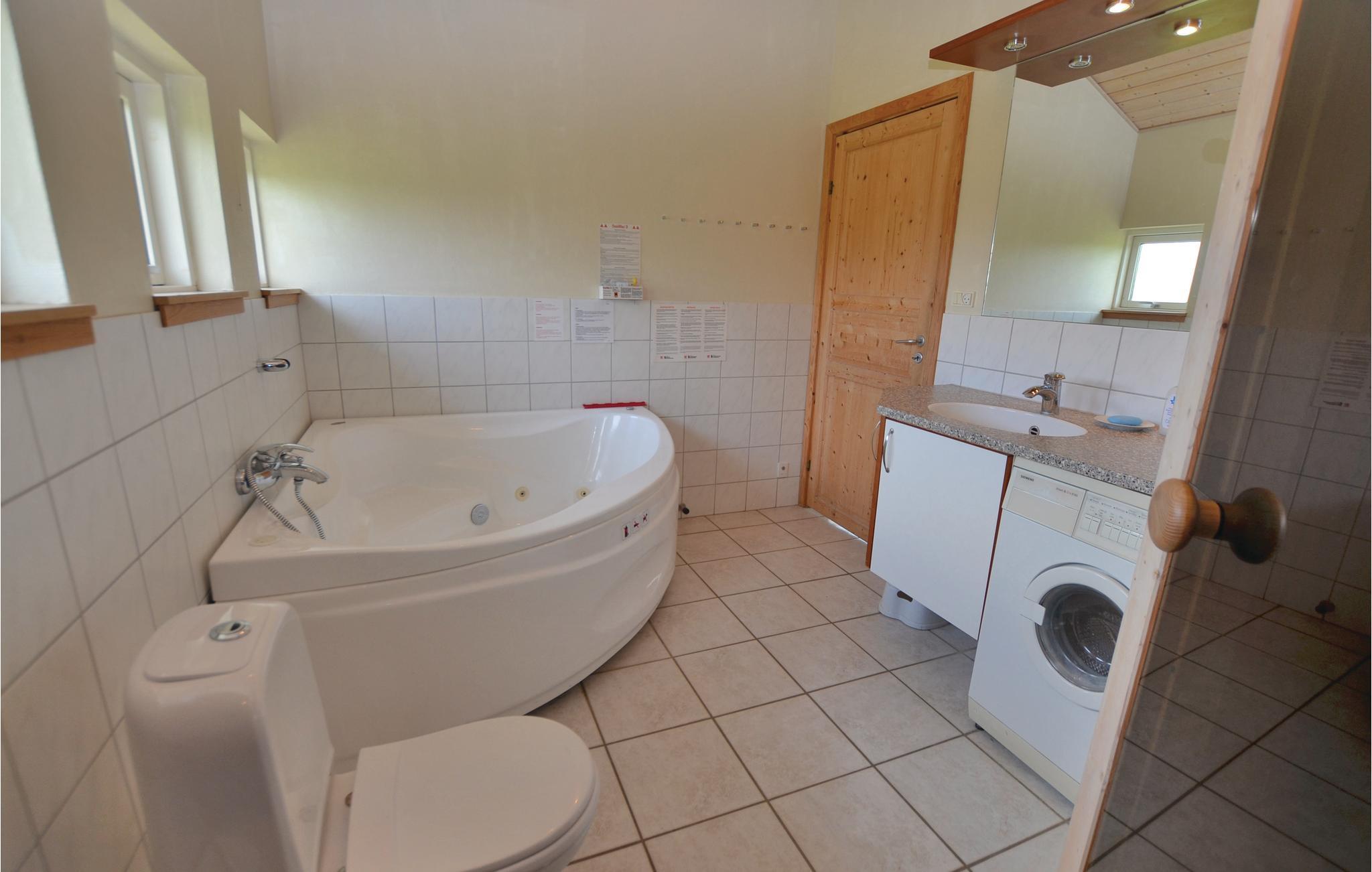 Schönes Ferienhaus aus Holz mit allen modernen Haushaltgeräten. Im Haus sind zwei schöne Bäder - beide mit Fußbodenheizung, das eine mit Whirlpool und Zugang zur Sauna. Es ist geschmackvoll mit Qualitätsmöbeln in modernen Farben eingerichtet. Es gibt vier separate Schlafräume und einen geräumigen Schlafboden, und das Haus ist gut für zwei Familien geeignet. Es liegt in einem ansprechenden Ferienhausgebiet nah an einem familienfreundlichen Badestrand. Ferienpark mit Badeland, Spielplatz und Restaurant (im Winter geschlossen) ist in wenigen Fußminuten zu erreichen.