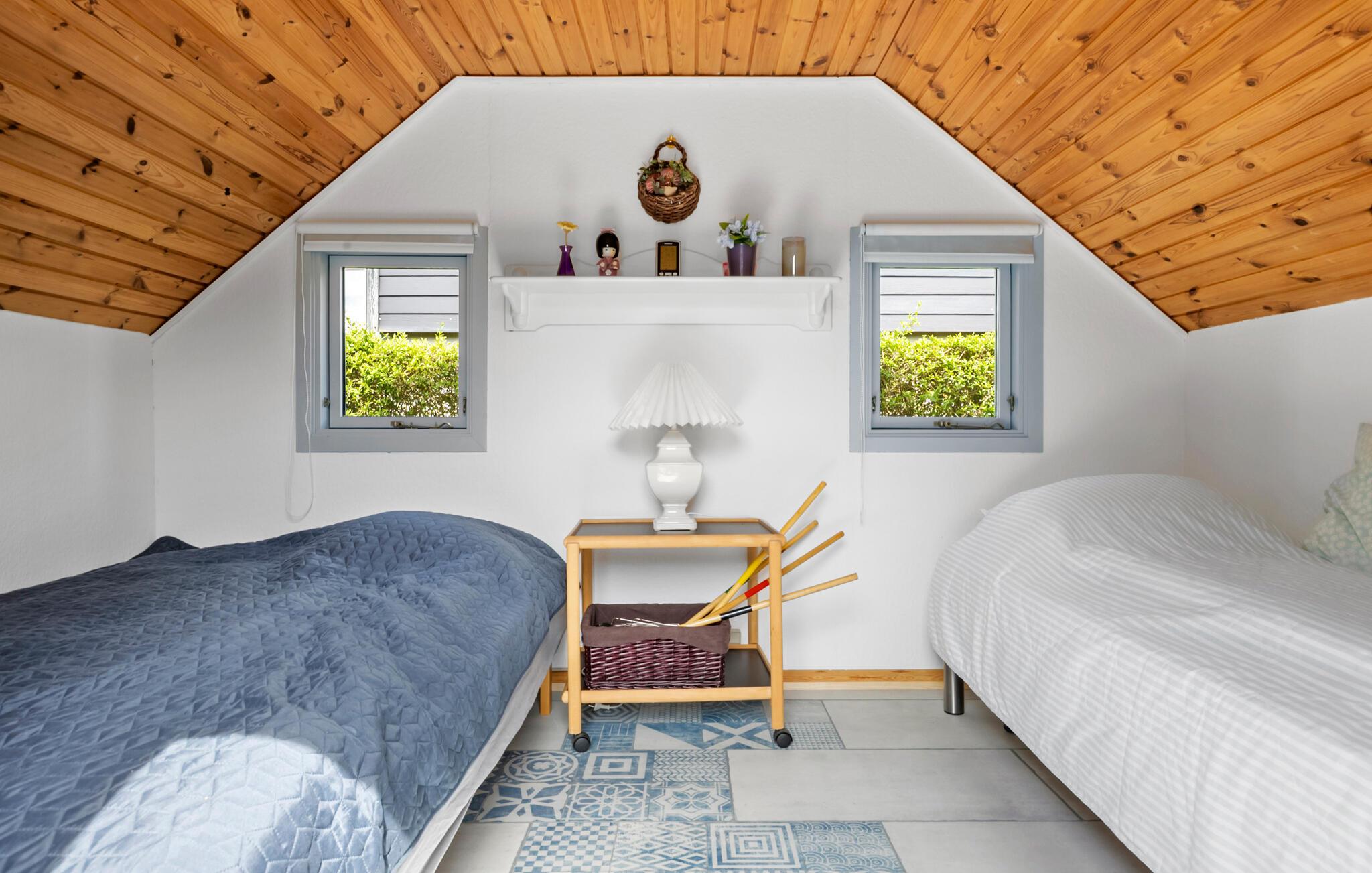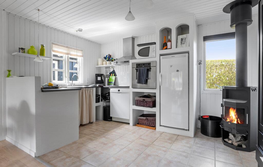 Dieses charmante Haus bietet Ihnen die ideale Basis für ruhige Tage an der Küste. Nur wenige Schritte vom Wasser entfernt, wohnen Sie hier in einer kleinen Ferienhaussiedlung mit direktem Zugang zur Natur und einem kinderfreundlichen Strand. Verbringen Sie Ihre Zeit im hellen Wohnbereich mit offener Küche und lassen Sie sich vom knisternden Kaminofen wärmen. Die Einrichtung ist freundlich und funktional, mit viel Licht, bequemen Sitzmöbeln und einem Esstisch für gesellige Mahlzeiten. Bereiten Sie Ihre Lieblingsgerichte in der Küche zu und machen Sie es sich anschließend mit einem Buch im Lesesessel gemütlich.