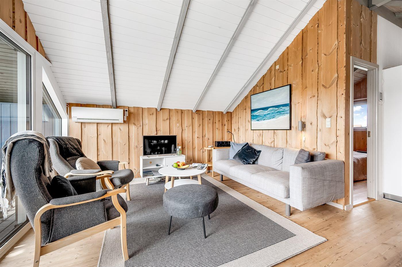 Die gemütliche Fischerstadt Hvide Sande liegt nur eine kurze Autofahrt entfernt. Dort kannst du frischen Fisch kaufen, ein leckeres Mittagessen genießen oder durch die kleinen Läden bummeln. Wenn du lieber aktiv bist, gibt es viele Möglichkeiten zum Wandern oder Radfahren auf Natur- und Fahrradwegen, die sich durch Dünen und Ferienhausgebiete schlängeln. Die Gegend ist außerdem für ihre hervorragenden Surfbedingungen – sowohl an der Nordsee als auch am Ringkøbing Fjord - bekannt.