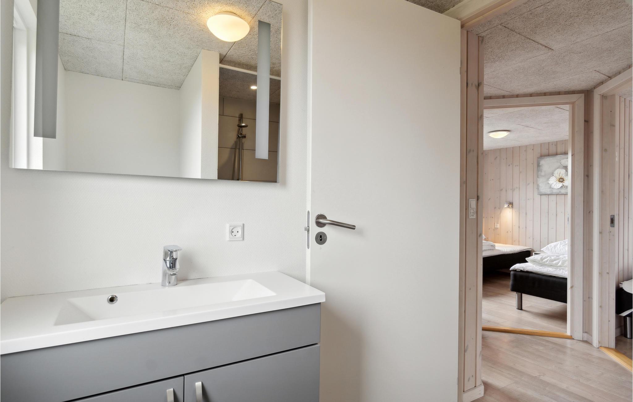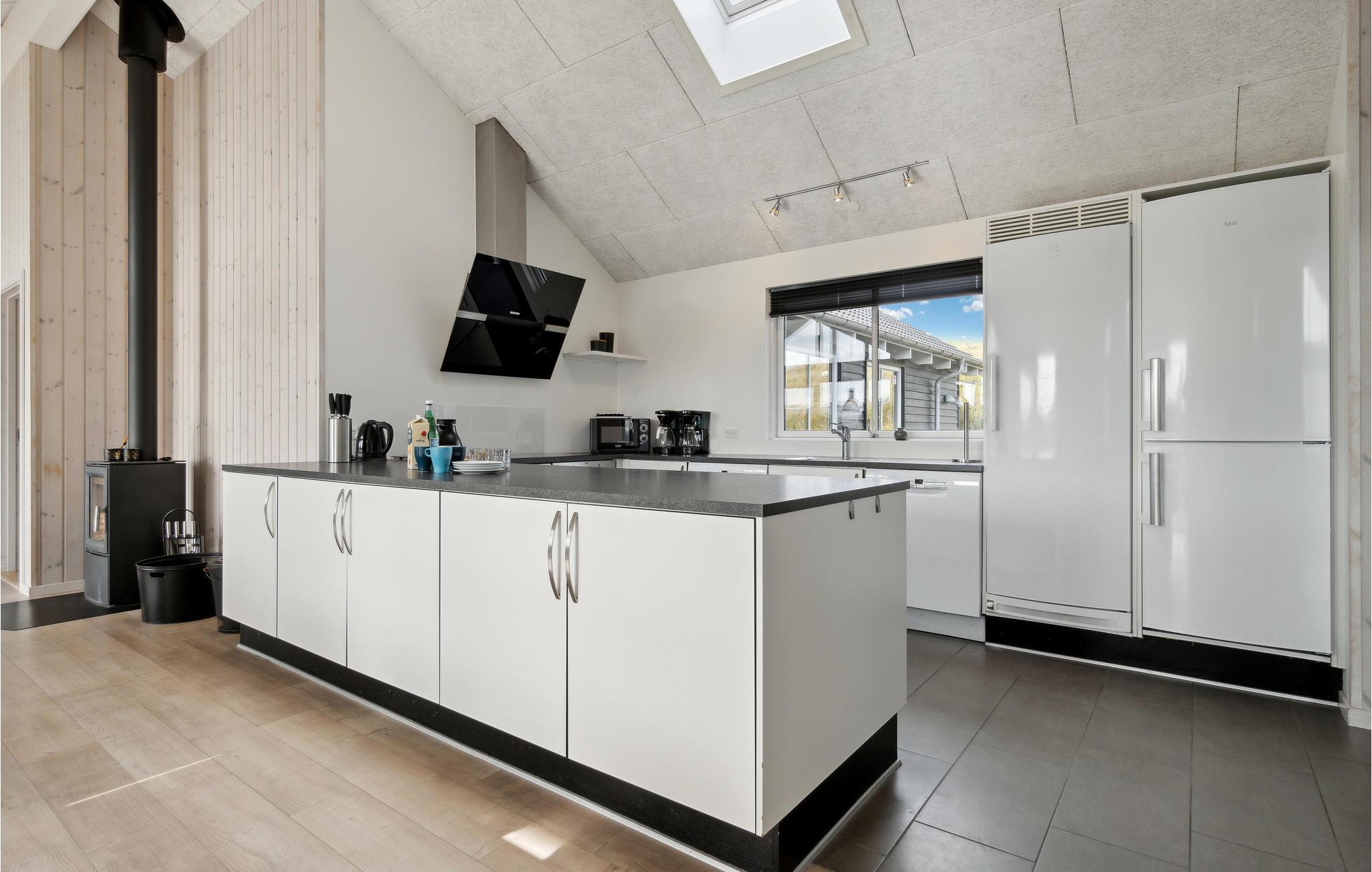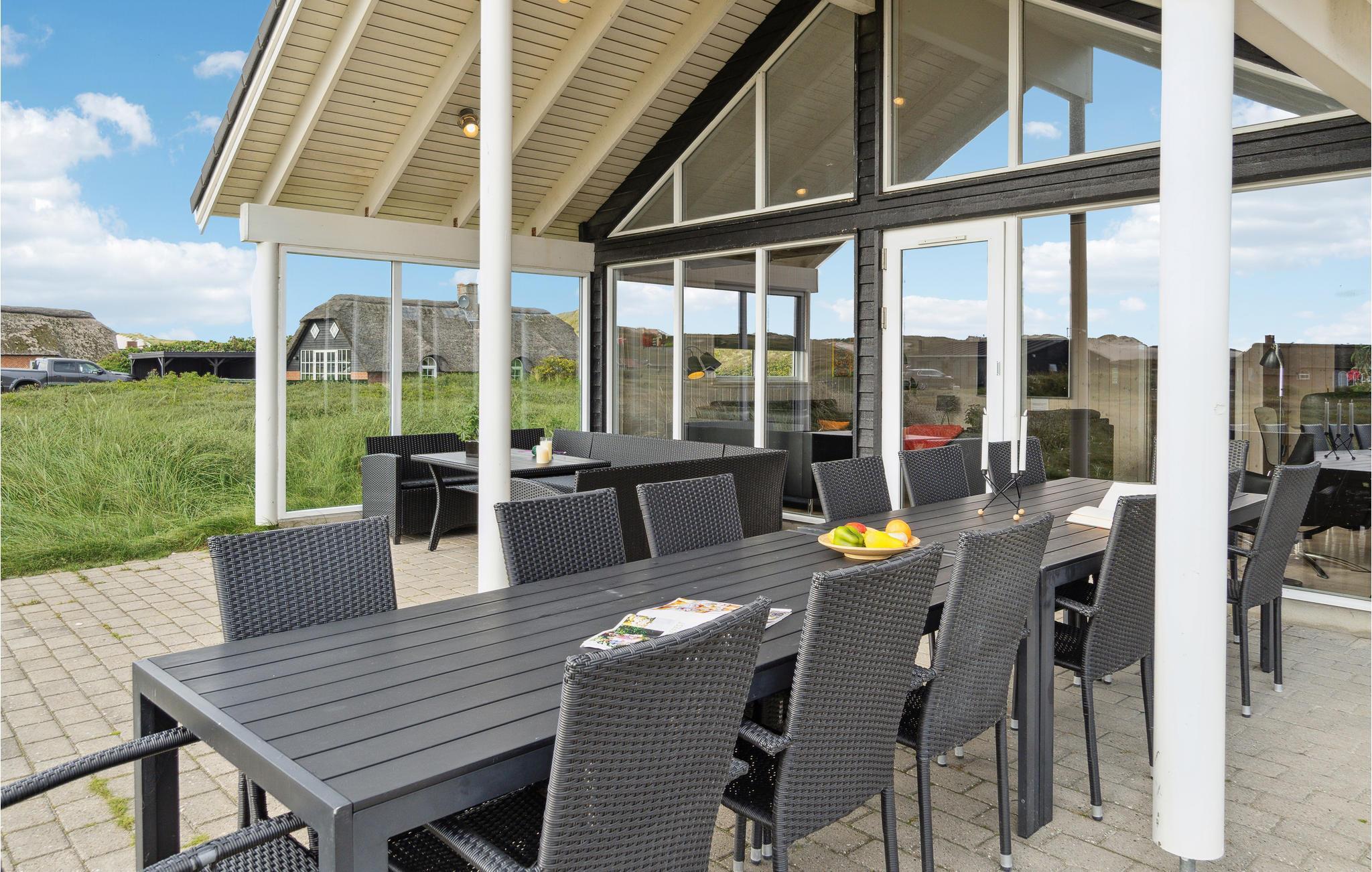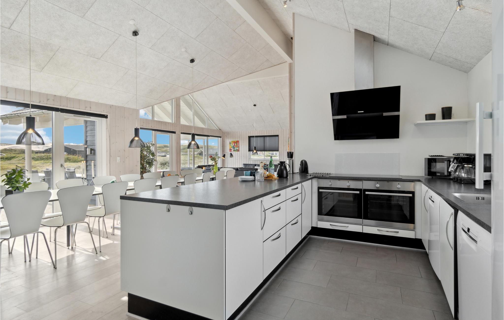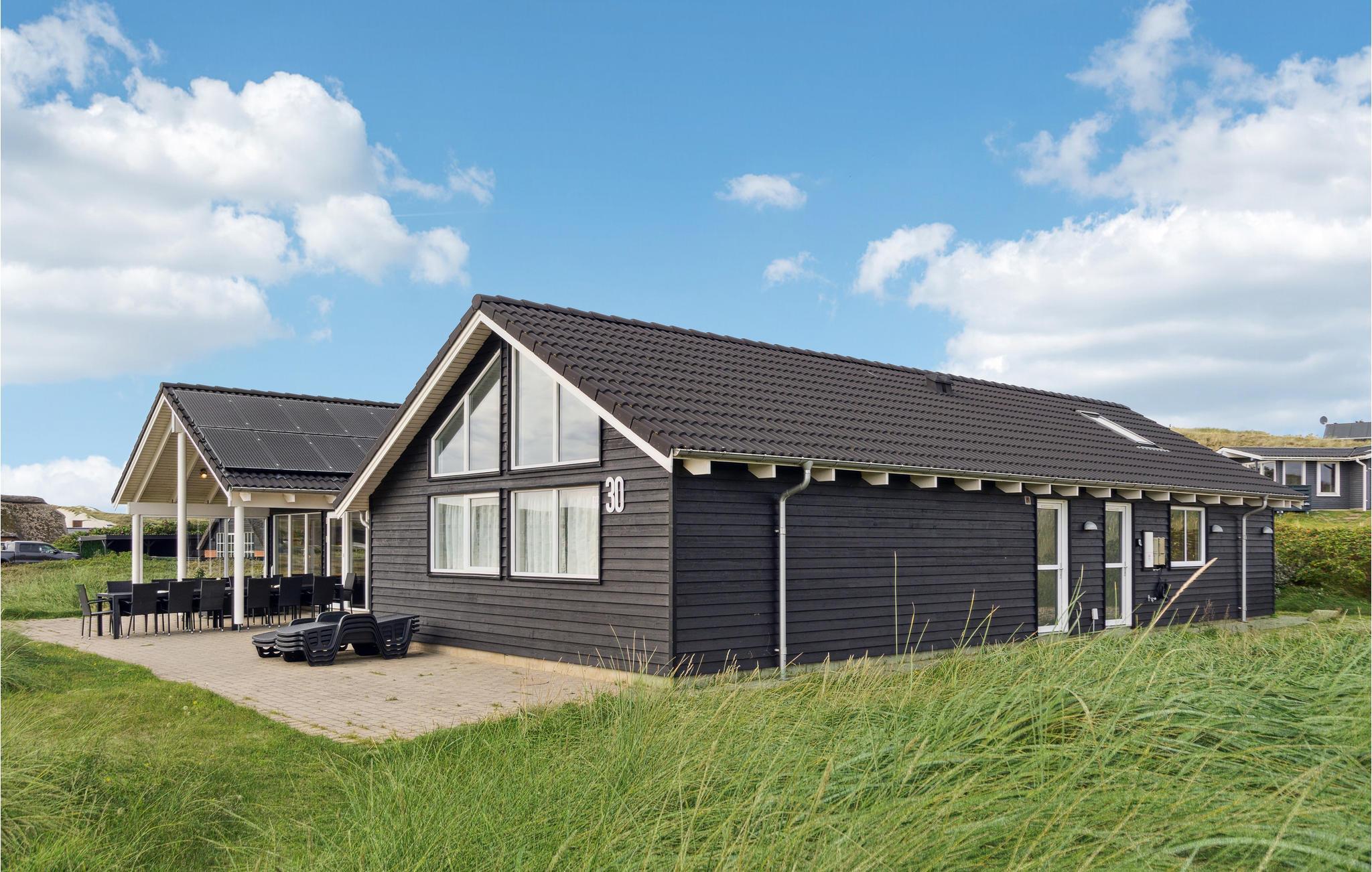 Hier haben Sie die Gelegenheit ein prächtiges Poolhaus ind der schönen Natur von Bjerregård zu erleben. Sie sind in der Nähe von der Nordsee und Gelegenheiten Ihren Urlaub aktiv zu gestalten. Ein perfekter Rahmen für Ferien zu jeder Jahreszeit. Im Haus erwartet Sie all jener Komfort, den Sie erwarten. Der große offene Schlafboden wird sicher Ihren Kindern gefallen. Die Decken des Hauses sind schallisoliert, er herrscht eine gute Akustik. Auf Luxus wurde vor allem im Poolraum gedacht, es sind Rutsche ein großer Whirlpool und eine große Sauna vorhanden. Des Weiteren gibt es im Haus: Tischtennis, Darts, Tischfußball, PS3 und Nintendo Wii. Die Küche ist mit 2 Geschirrspülern, 2 Herden und Gefriereinheiten. Der dänische Sommer kann in vollen Zügen auf der teilweise überdachten Terrasse genossen werden, währen Ihre Kinder schaukeln oder im Sandkasten spielen.