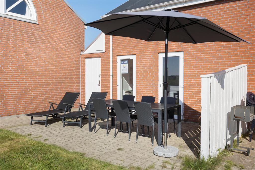 Nicht nur das Wohnzimmer, auch die Terrasse ist ein ausgezeichneter Ort, um die Aussicht zu genießen. Hier kannst du sitzen und die Sonne genießen, während du über die schöne Naturlandschaft und über die spektakuläre 18-Loch Links-Bahn des Rømø Golfklubs schaust.