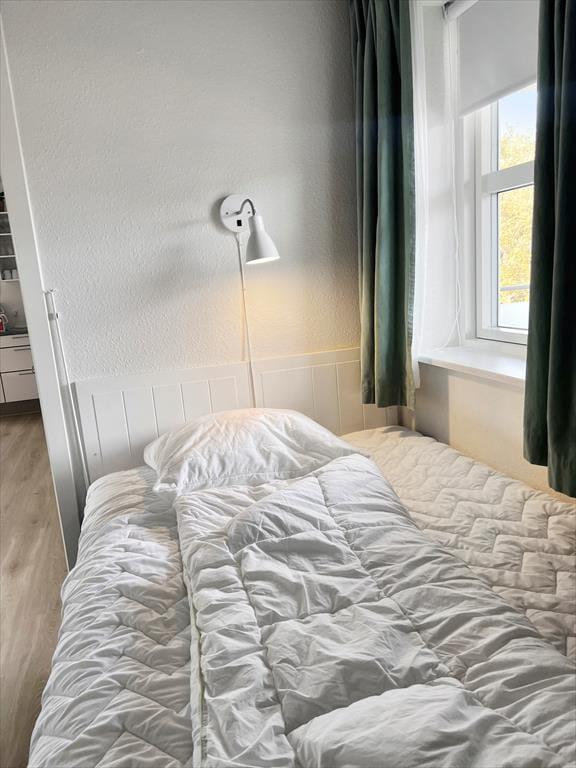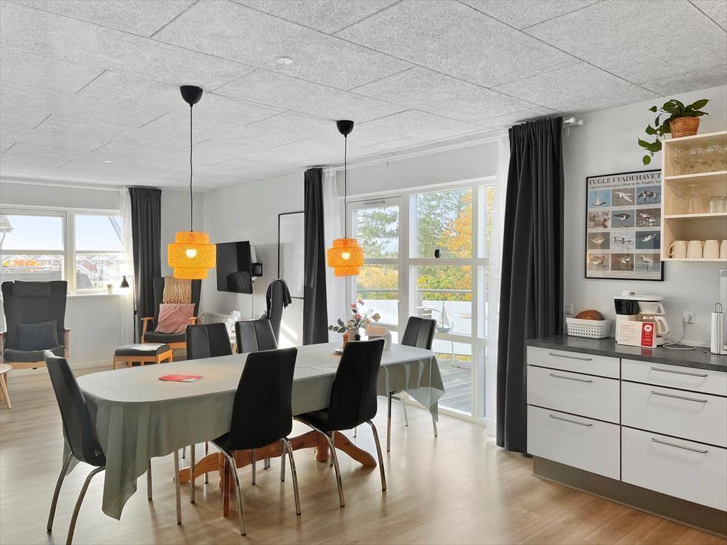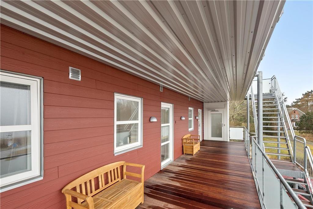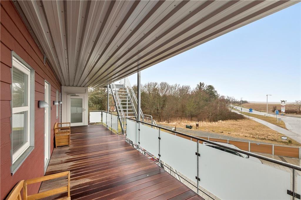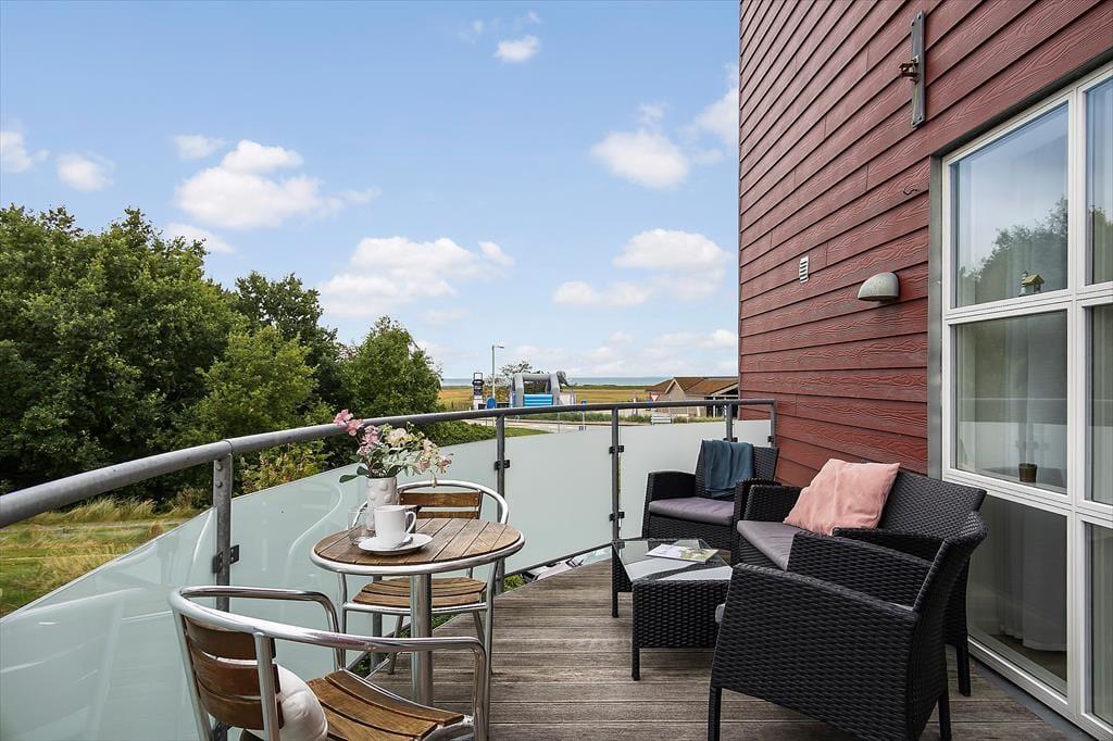 Vom privaten Balkon der Wohnung aus hast du Aussicht auf grüne Bäume und blauen Himmel, und zu der einen Seite kannst du den Blick auf das Wattenmeer genießen, welches einen Platz auf der Liste des UNESCO-Welterbes einnimmt. Wattenmeer und Strandwiesen sind auch Bestandteile des Hintergrunds, wenn du dich auf der überdachten Galerie aufhältst, die du gemeinsam mit den Bewohnern der Nachbarwohnung nutzen darfst. Von der Galerie aus kannst du entweder die Treppe oder den Fahrstuhl benutzen, wenn du dich nach unten begeben möchtest, wo ein gekennzeichneter Parkplatz zur Wohnung gehört.