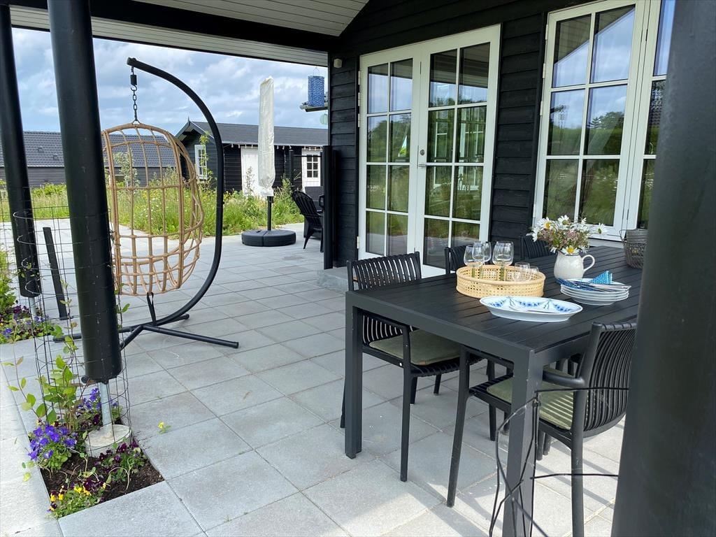 Unter freiem Himmel lädt eine große Terrasse zu ausgedehnten Sonnenbädern und entspannten Lesestunden ein. Bei Einbruch der Dunkelheit kannst du dich mit deinen Lieben auf den überdachten Terrassenteil zurückziehen. Lange Urlaubstage lasst ihr gemeinsam sicherlich gern mit einem köstlichen Abendessen vom Grill ausklingen. Das Naturgrundstück bietet viel Biodiversität und lockt daher zahlreiche Schmetterlinge, Bienen und andere interessante Insekten an. Spaß und Aktivität für die gesamte Familie verspricht das schnell erreichte Gemeinschaftsareal, auf dem ihr zusammen beispielsweise Boccia und Fußball spielen könnt.