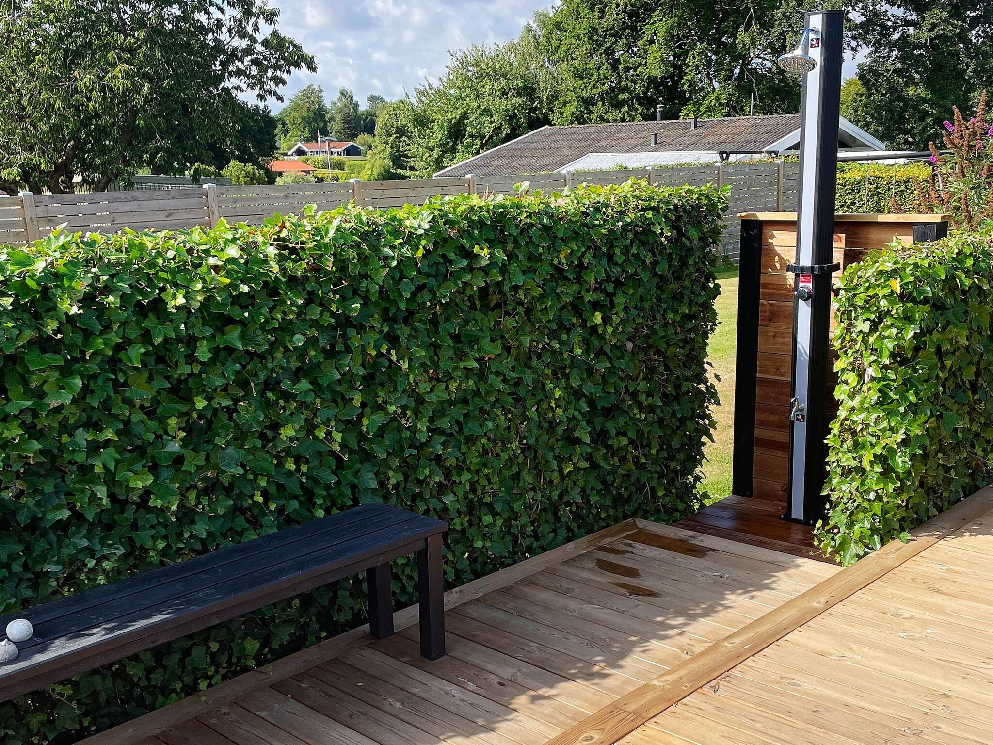 Entdecken Sie die Oase des Lebens im Freien. Das Anwesen verfügt über eine 130 m² große Terrasse, darunter eine überdachte Fläche von ca. 20 m² – ideal zum Entspannen bei jedem Wetter. Mehrere Sitzbereiche, darunter ein gemütliches Lounge-Set und Sonnenliegen, laden zum Sonnenbaden, Lesen oder langen Gesprächen bei einer Tasse Kaffee ein. Die große Terrasse lädt zum Essen im Freien ein, und die praktische Außendusche ermöglicht ein bequemes Abduschen nach einem erlebnisreichen Tag am Strand.