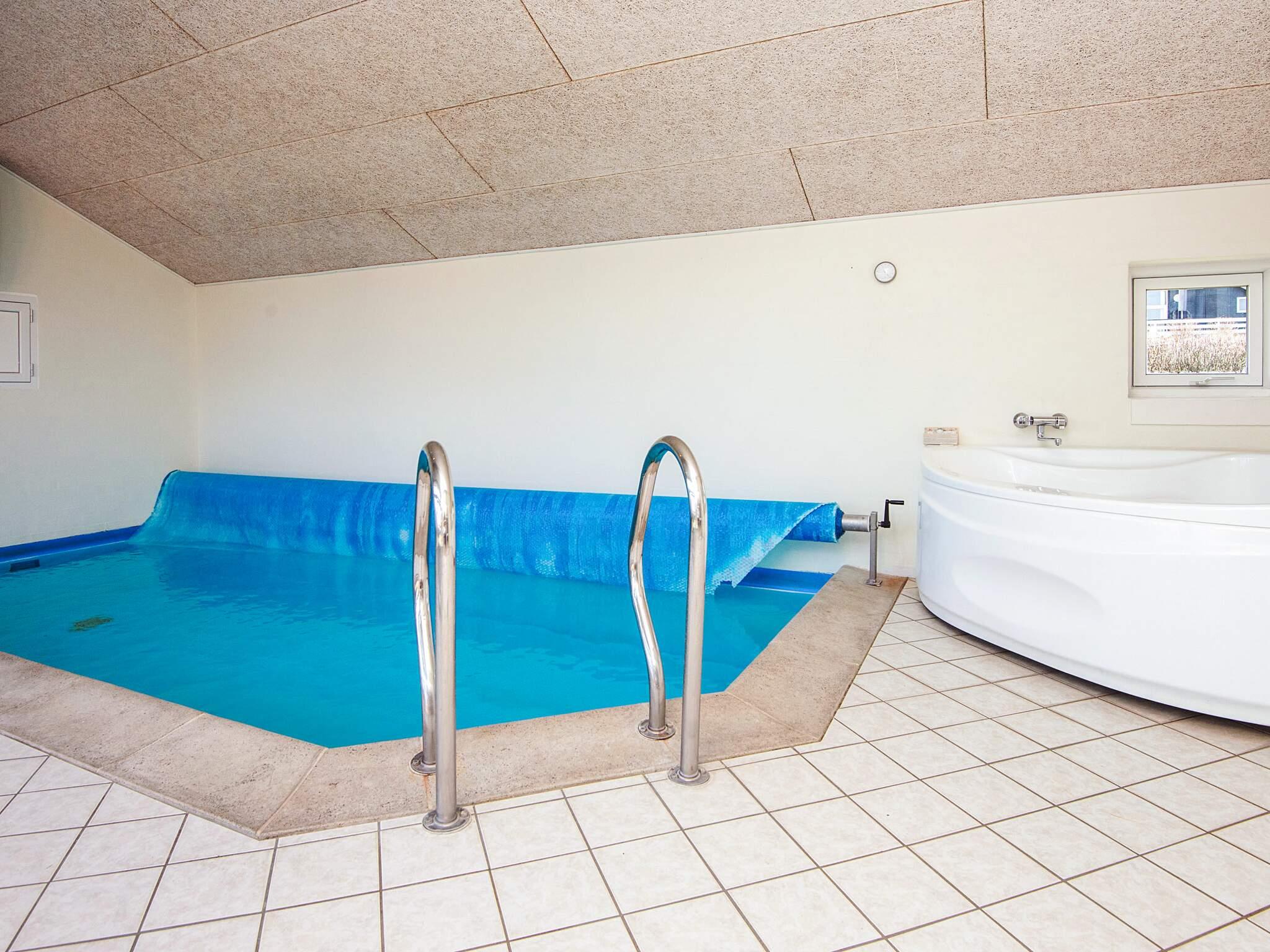 Durch die große Fensterfront im Poolbereich hat man sowohl vom Pool als auch vom Whirlpool schönen Ausblick nach draußen. Der Whirlpool wird mit Wasser aus dem Pool befüllt. Alternativ kann dieser aber auch mit chlorfreiem Wasser direkt aus dem Hahn befüllt werden.