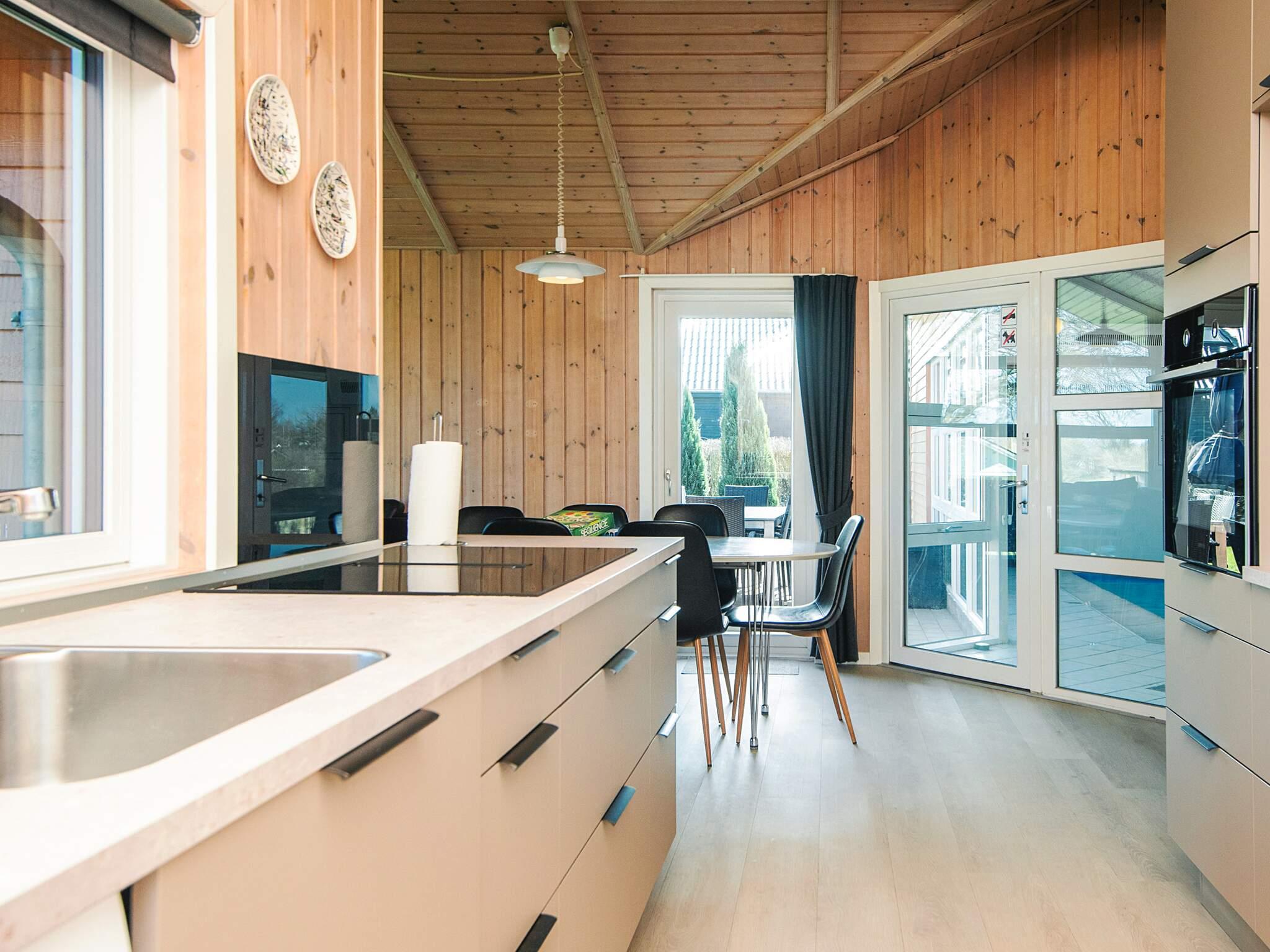 Dieses Ferienhaus mit Pool, Whirlpool und Sauna für Wellness und Erholung steht am Ende einer kleinen Sackgasse, auf einem gut abgeschirmten Rasengrundstück im Ferienhausgebiet von Hejlsminde.