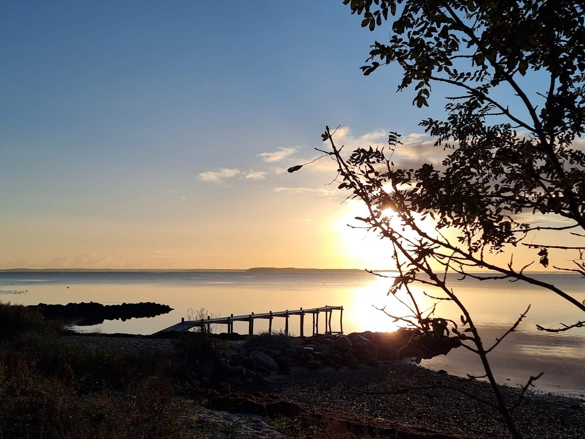 Das Strandufer von Hejlsminde gilt als kinderfreundliches Badewasser mit feinem Sand sowie Badesteg für Sommertage.